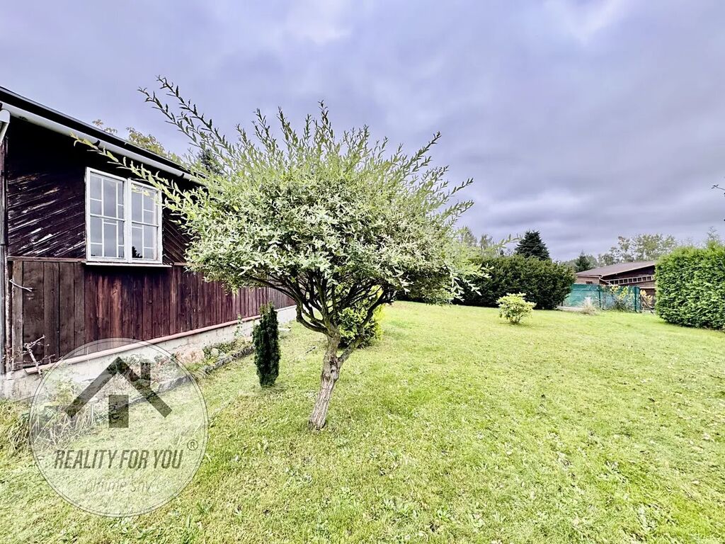 Zahrádka o výměře 413 m2 se rovinatá a nabízí absolutní soukromí, možnost parkování až na pozemku, dřevěnou chatku po rekonstrukci a vlastní studánku.