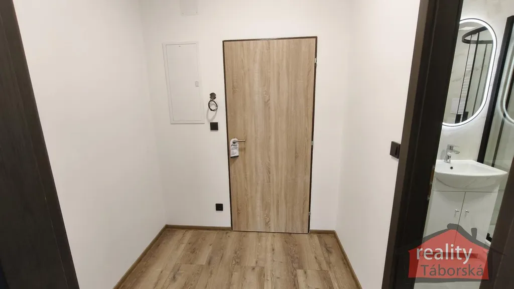 V obývacím pokoji s kuchyňským koutem je laminátová plovoucí podlaha, v koupelně keramická dlažba. V koupelně je sprchový kout, umyvadlo, toaleta a prostor na pračku s připravenými vývody na vodu a odpad. Provedení ve standardu, není potřeba dokončovacích prací. V bytě jsou plastová tříkomorová okna a bezpečnostní vstupní dveře, které jsou uvnitř foliované. Vchodové dveře do domu mají bezpečnostní zámek ovladatelný z mobilního telefonu.