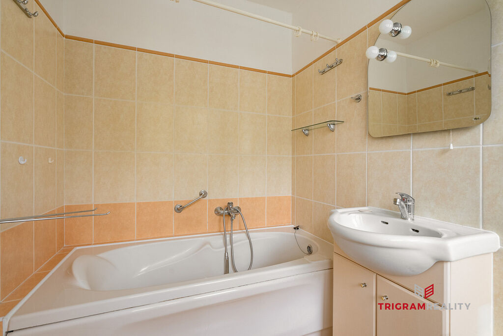 Je zde také připravena přípojka vody a odpadu pro myčku, takže si nájemce může nainstalovat vlastní. K dispozici je i lednice.