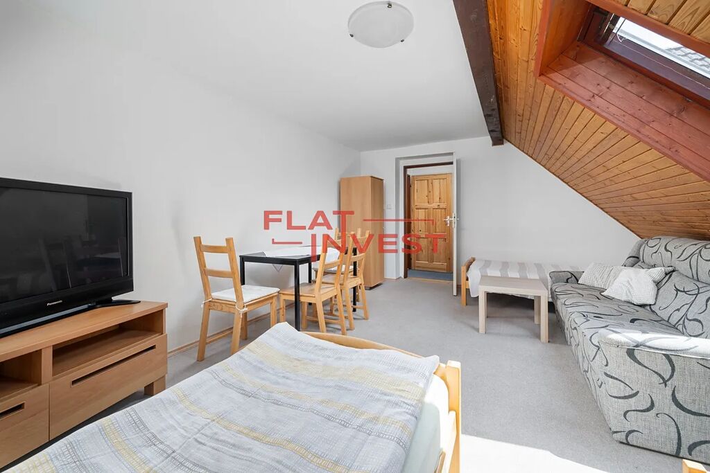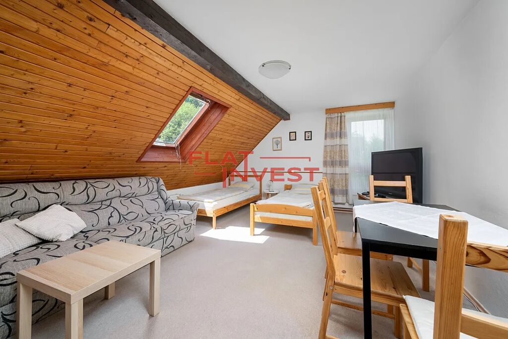 V přízemí nalezneme po vstupu do samostatné chodby obývací pokoj s kuchyní, koupelnu s toaletou a dále jeden samostatný pokoj s východem na zahradu která náleží k tomuto bytu. V patře potom jsou tři samostatné pokoje které v současné době slouží ke krátkodobému pronájmu.