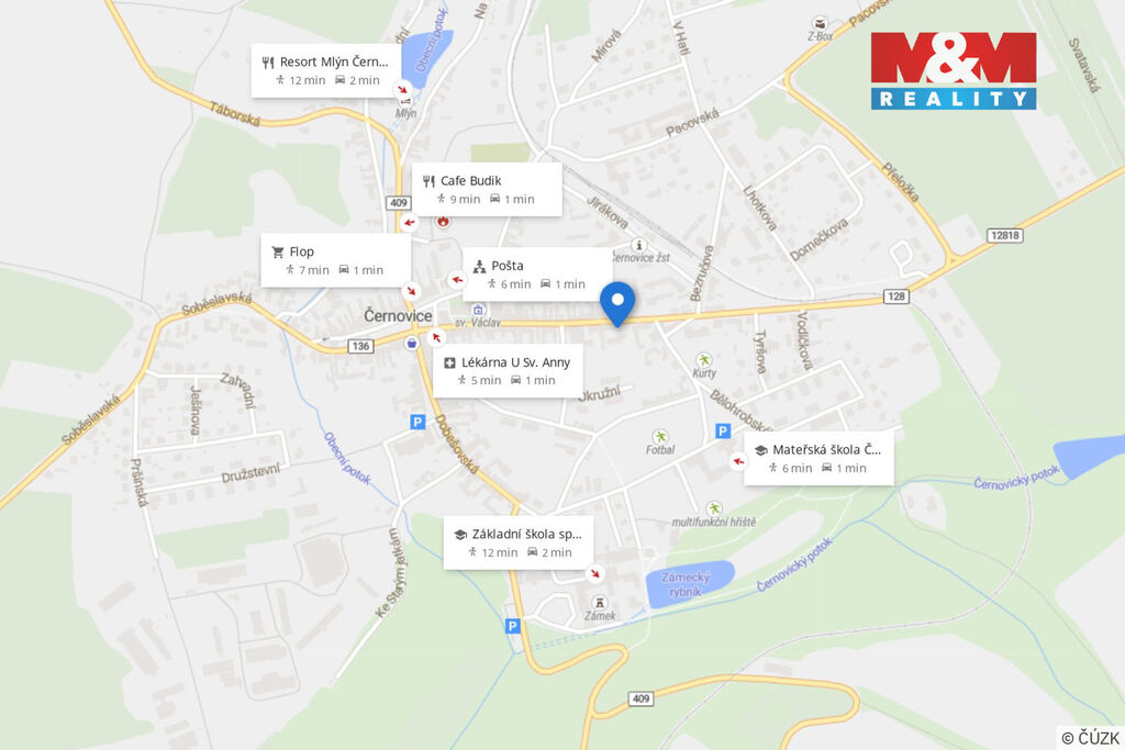 Nabízíme k prodeji rodinný dům s uzavřeným dvorem v žádané lokalitě Černovice u Tábora. Celková plocha pozemku je 187 m2. Tento dům je vhodný jak k trvalému bydlení, tak k rekreaci. V přízemí domu jsou dva pokoje, prostorná kuchyně s jídelnou, koupelna, toaleta a dostatek úložných prostor zajišťuje komora, špíz a prostorná chodba. Po dřevěném schodišti z chodby je vstup do podkroví, kde je jeden útulný pokoj a půda, která čeká v případě potřeby na další realizaci obytné části. Dům je napojený na obecní vodovod, kanalizaci a vytápění je plynovým kotlem z roku 2016.Okolí Černovic nabízí krásnou přírodu pro turistiku a cyklovýlety. Na okraji obce se nachází přírodní koupaliště, v sezóně s občerstvením. V Černovicích je škola, mateřská škola, Flop, restaurace, lékaři. Zveme vás na prohlídku. Více informací v RK.