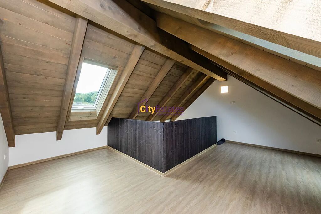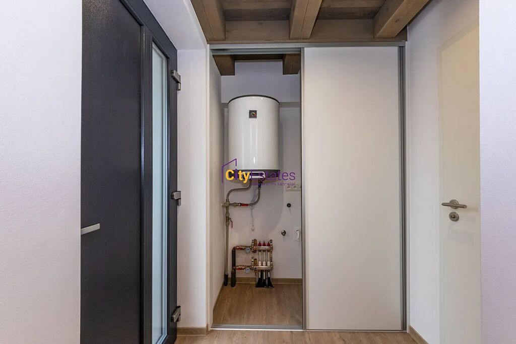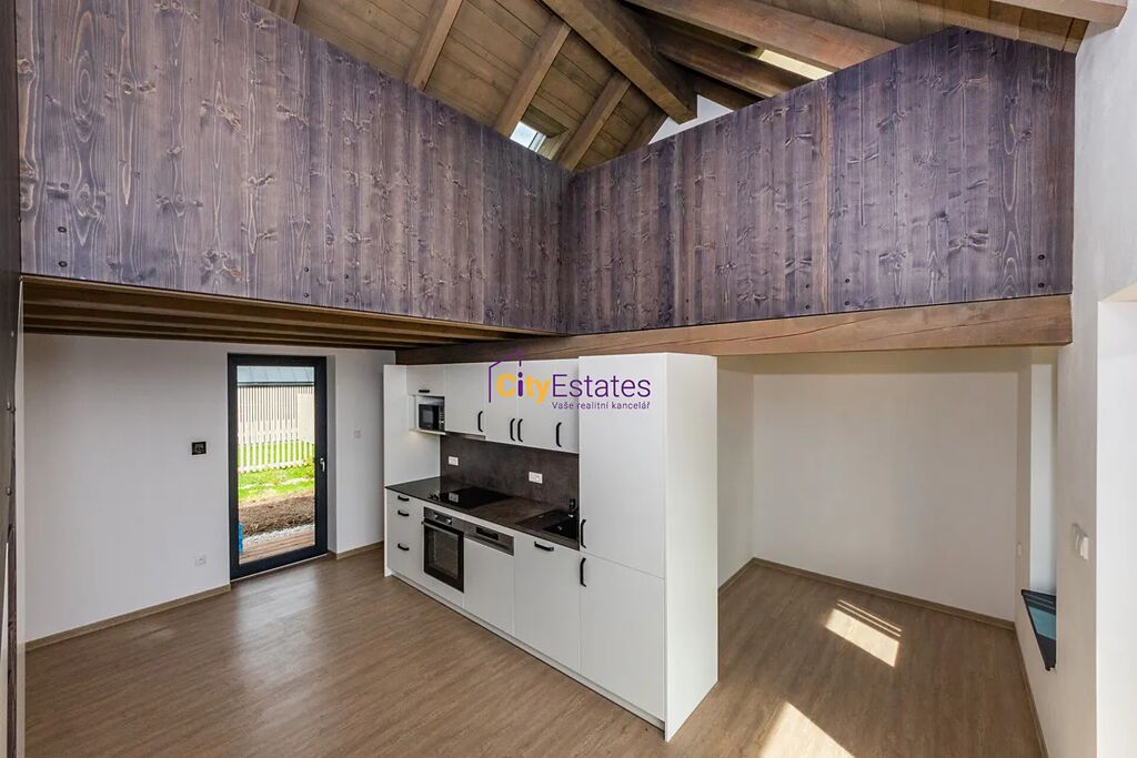 Do bytu, který je ve 2 podlaží domu, vstoupítešatnou, ze které vejdete do hlavního obývacího prostoru s kuchyňským koutem nebo do koupelny s toaletou. Na obývací pokoj navazuje lodžie. Přízemí je o výměře 30m2, v patře je galerie 16m2.