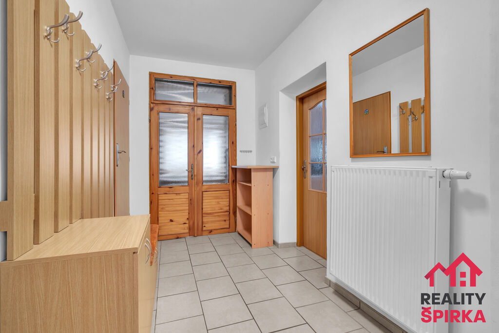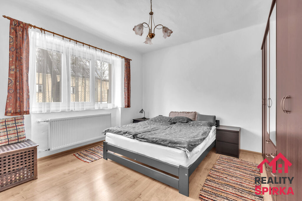 V přízemí zádveří, předsíň, chodba, prostorný obývací pokoj s jídelnou a kuchyní, dvě dětské ložnice, hlavní ložnice, velká koupelna s rohovou vanou i sprchou, WC a spižírna.