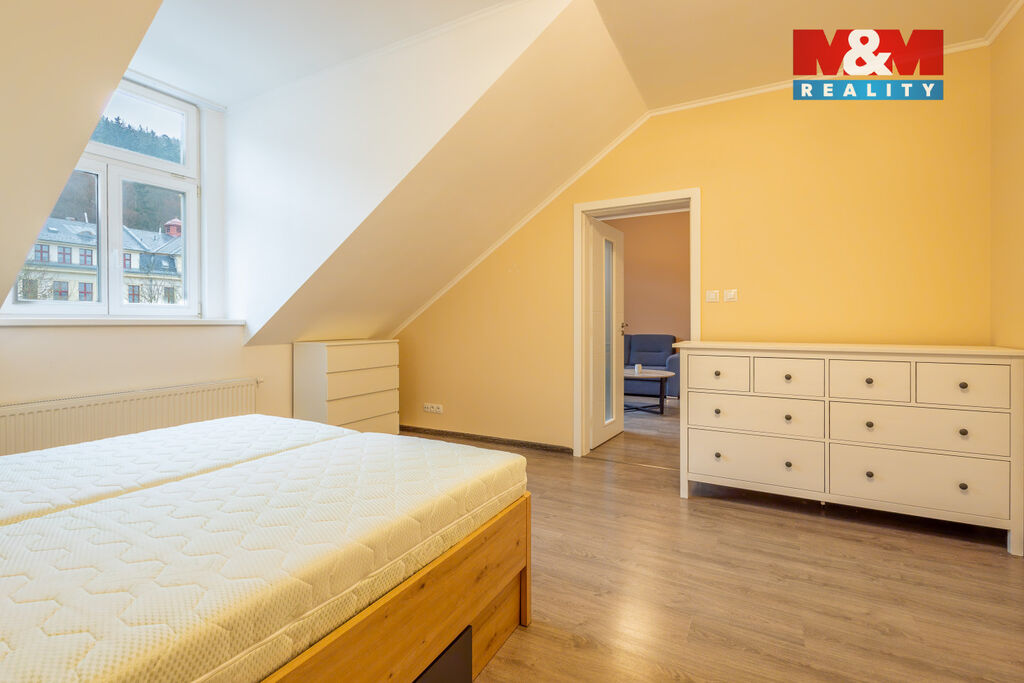 Byt je orientován na jih s pěkným výhledem, cca 300 m od Magistrátu Karlovy Vary a nachází se v klidném
