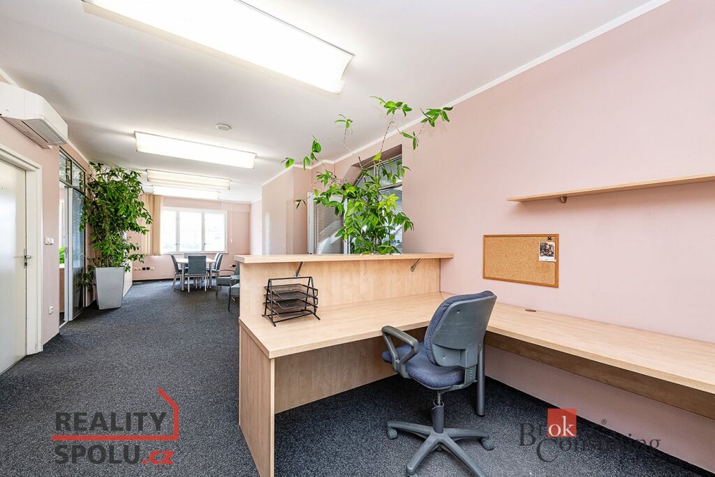 Ke kanceláři dále patří vlastní kuchyňka a recepce, která tvoří profesionální první dojem pro klienty. Je k dispozici i balkón a 2 parkovací stání. Další parkování je potřeba řešit poblíž budovy. Místa je však v okolí dostatek.