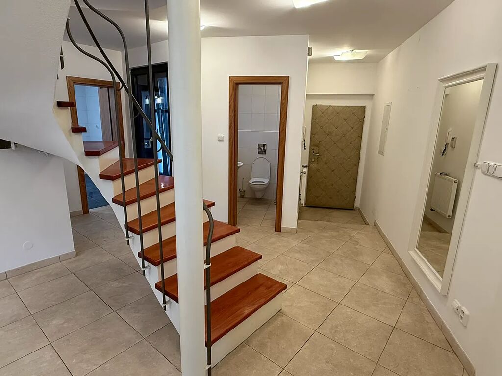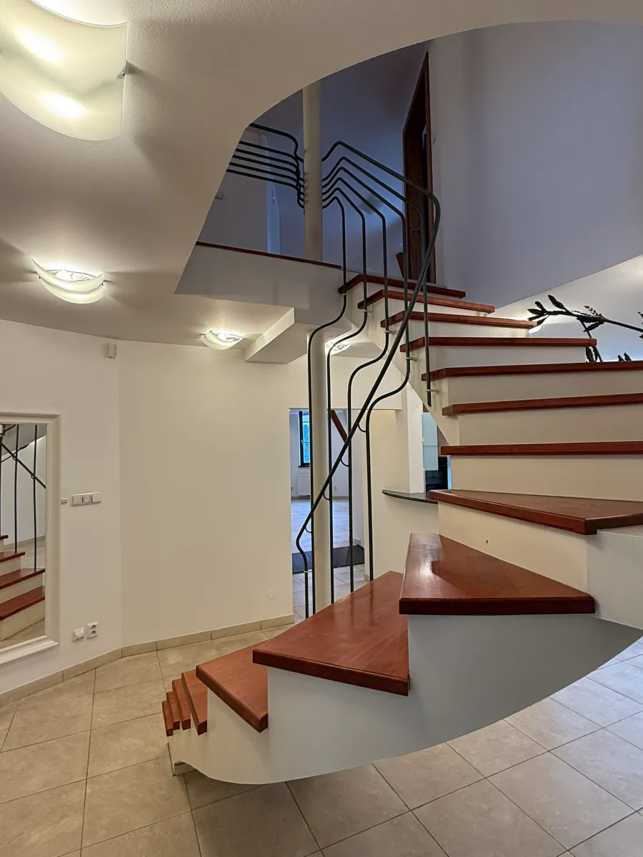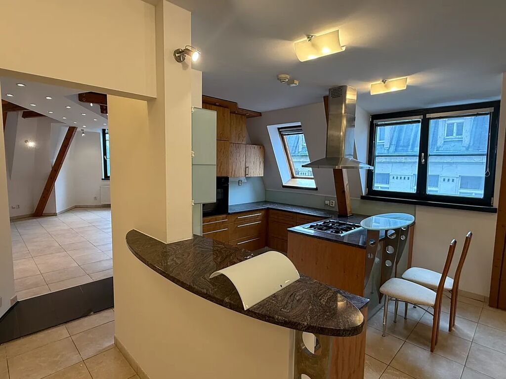 Nabízíme k pronájmu prostorný mezonetový byt 5+kk o výměře 165 m2, situovaný v podkroví historického bytového domu s výtahem. Dům je umístěn v ulici Frýdlantská, v samém centru Liberce u náměstí Dr. E. Beneše a radnice. Byt obsahuje dvě koupelny, dvě toalety, kuchyňskou linku s vestavěnými spotřebiči a je částečně zařízený vestavěným nábytkem. Interiéry mají reprezentativní charakter a celý byt je designovaný v jednotném a velice příjemném stylu. Volný ihned. Vratná kauce činí 50.000,- Kč, provize RK činí 25.000,- Kč. Vzhledem k tomu, že před vytvořením prezentace nebyl majitelem dodán platný PENB, je tato nemovitost v souladu se zákonem dočasně zařazena do poslední energetické třídy G.