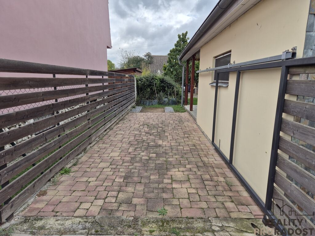 Jedná se o pěkný bezbariérový byt kde najdeme vstupní halu, kuchyň s obývacím pokojem, dvě ložnice a koupelnu s vanou a sprchovým koutem. Kuchyň s jídelnou je vybavená vestavěnými spotřebiči, myčka, trouba, mikrovlnka, lednička a mrazák. Příjemný starší majitel bydlí v patře tohoto hezkého rodinného domu.