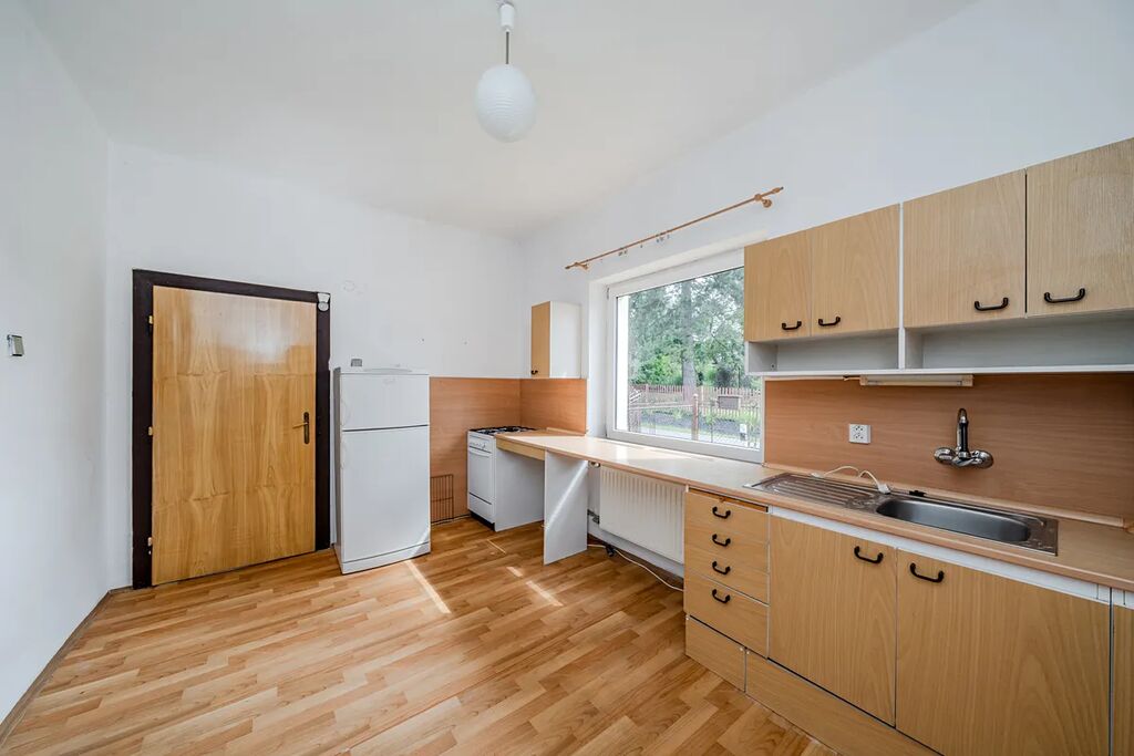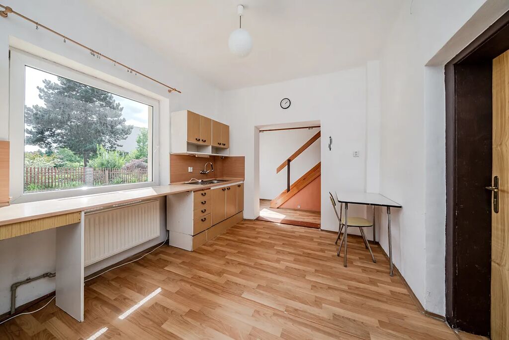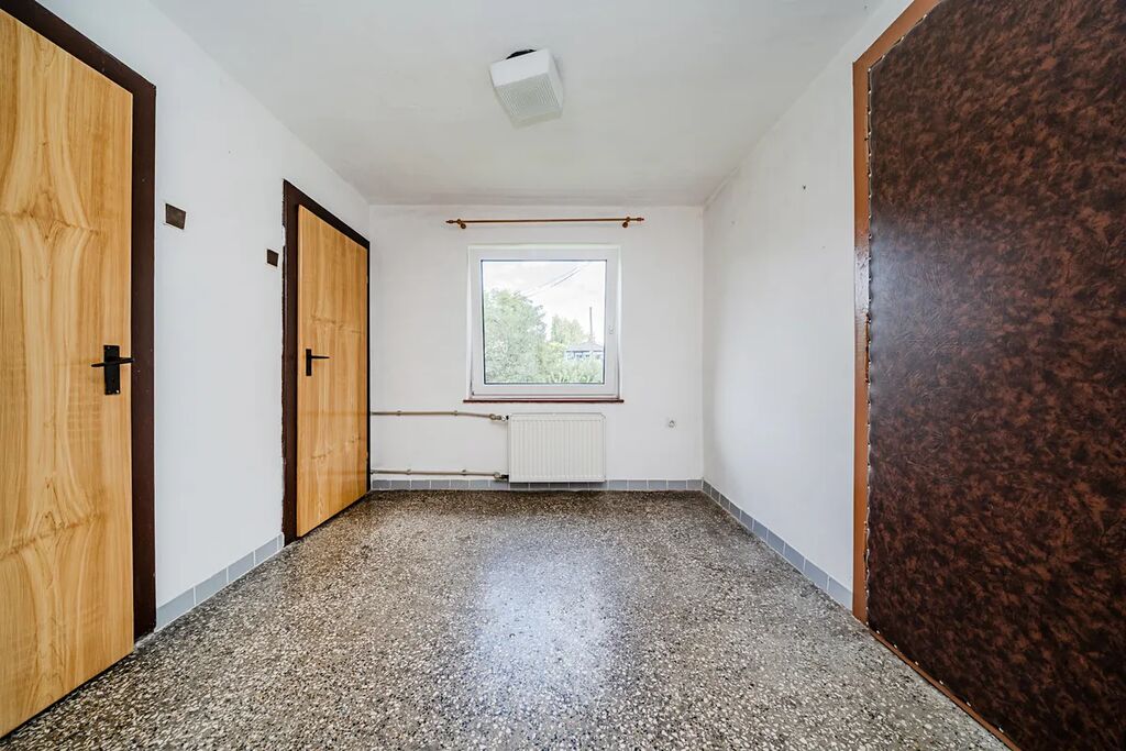 V přízemní části domu se nachází kuchyň, obývací pokoj, koupelna a toaleta. Dispozice 3+1 je v patře doplněna o menší pokoj s oknem, přístupný z ložnice, který lze využít jako pracovnu nebo šatnu. Dům je v původním, udržovaném stavu, s plastovými okny a dvojskly. Vytápění je řešeno na tuhá paliva, s novými rozvody v plastu a novými radiátory. Elektroinstalace je provedena v mědi. Voda je obecní, navíc je k dispozici studna. Rozvody vody jsou v plastu, odpad je napojen na kanalizaci. Byla provedena nová fasáda, bez aplikace tepelné izolace a zateplovacího systému, střecha je plechová.