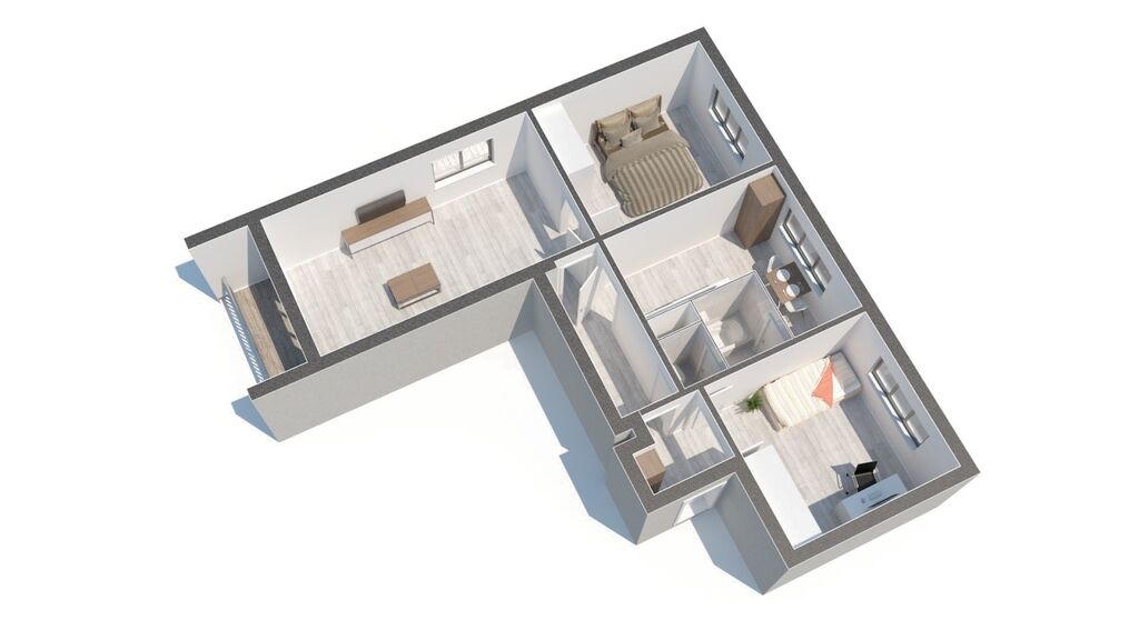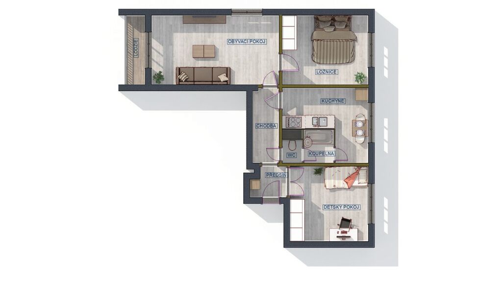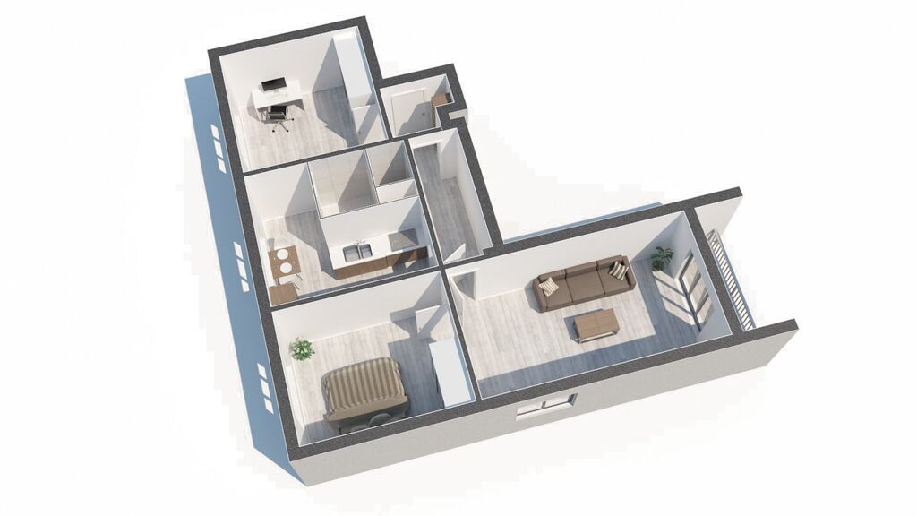 Nabízíme k prodeji světlý byt o dispozici 3+1 s podlahovou plochou 68,8 m², který se nachází ve 4. patře revitalizovaného panelového domu v klidné části Plzně – Doubravka.