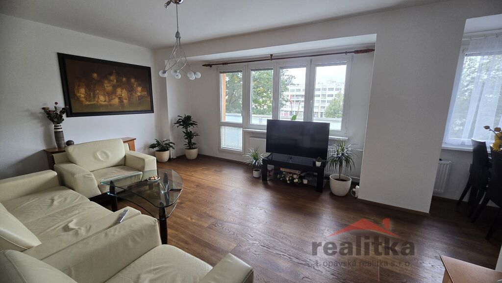 Nabízíme prodej krásného bytu 3+1, 70m2, s balkónem v Opavě na ul. Edvarda Beneše. Byt se nachází ve 3. patře panelového domu s výtahem. Dům je po celkové revitalizaci, je bezbariérový. Na domě není žádný revitalizační úvěr, FO je ve výši 894,-kč. Byt je po celkové, velmi kvalitní rekonstrukci. Majitelé odstranili stěnu mezi obývacím pokojem a kuchyní a vznikl krásný, vzdušný otevřený prostor. V celém bytě je nová elektřina, dřevěné kvalitní podlahy, masivní obložkové interiérové dveře, bezpečnostní vchodové dveře, plastová okna. V předsíni, pokoji a ložnici jsou vestavěné skříně, skříňky a manželská postel. Vše v bytě zůstává. Kuchyň je krásná, moderní, je zde zabudovaná elektrická trouba, presovač na kávu, myčka, indukce, odsávač par, lednice s mrazákem. Z obývacího pokoje je vstup na balkón. V koupelně je rohová vana, umyvadlo, napojení na pračku i sušičku. Wc je zvlášť. K bytu náleží sklepní kóje. Zájemci o prohlídku dle domluvy s paní Gratzovou.