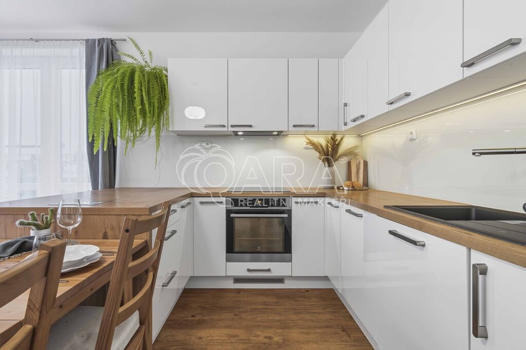 Nabízím ke koupi moderní byt o dispozici 3+kk a výměře užitné plochy 83,2 m², který se nachází v oblíbené lokalitě Horoměřice, v rezidenčním projektu z roku 2018. K bytu náleží prostorná terasa o velikosti 49,8 m², garážové stání a sklep (3,2 m²). Byt je situován v 5. nadzemním podlaží s výtahem a nabízí praktické uspořádání...prostorný obývací pokoj s kuchyňským koutem, ložnici, dětský pokoj, koupelnu s vanou a sprchovou zástěnou, samostatné WC a vstupní chodbu.