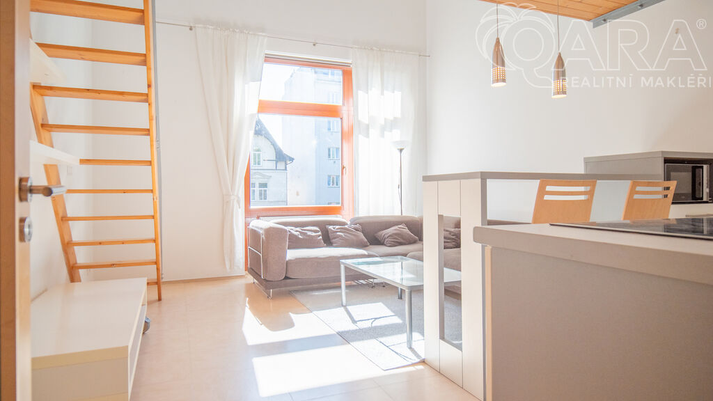 K dlouhodobému pronájmu nabízím vybavený loftový byt 1+kk s podlahovou plochou 40,0 m² na adrese Novákových 1817/30a, 180 00 Praha 8 - Libeň.