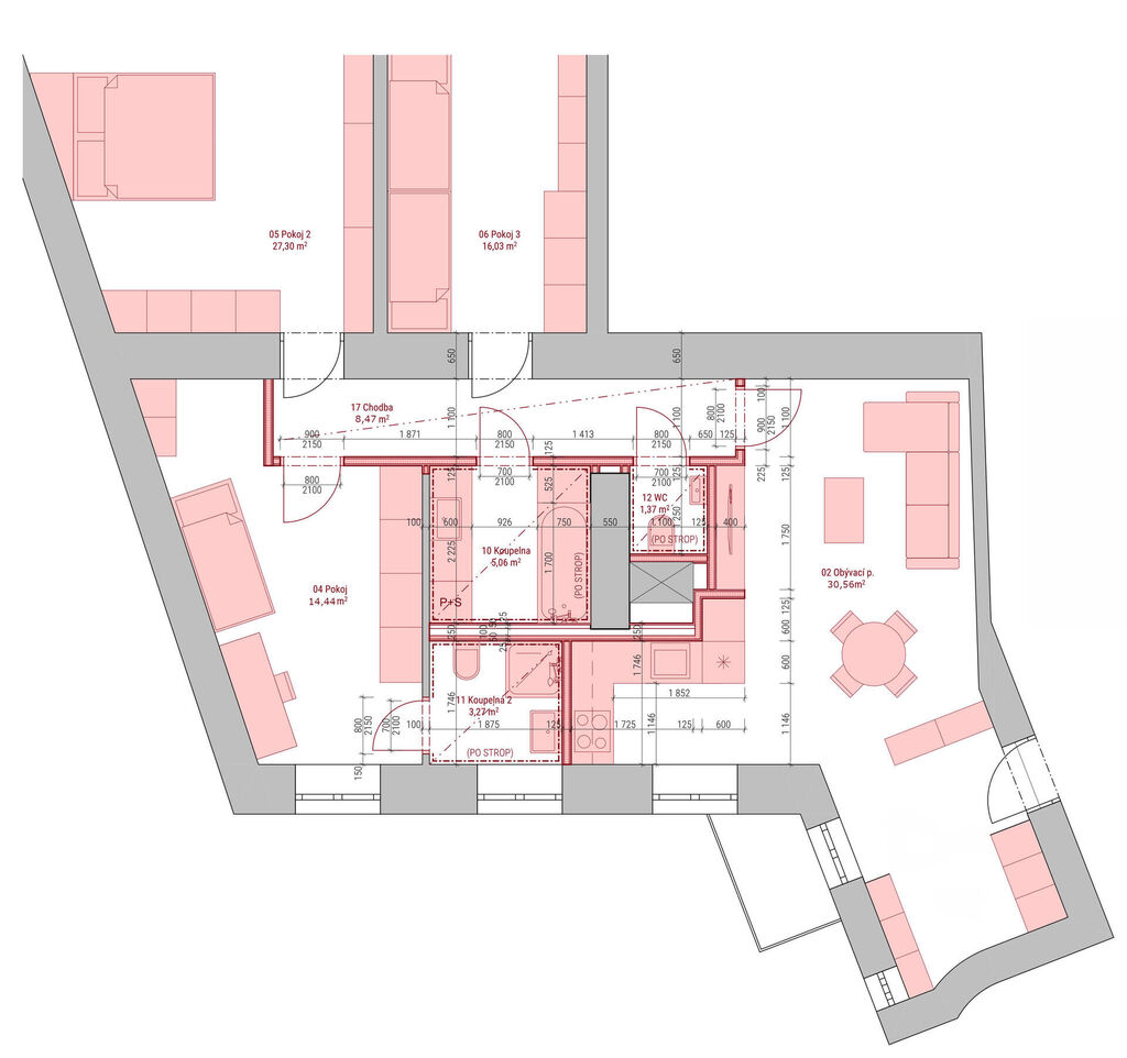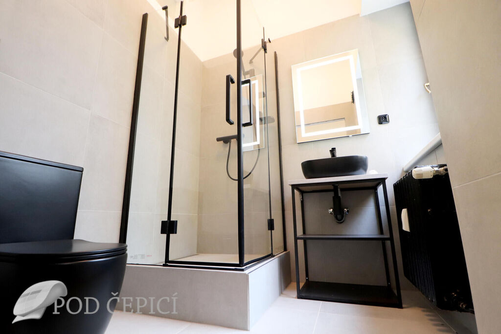 Byt se nachází ve 3. patře cihlového domu. Jednotka je v dispozici 3+1 a s plochou 10m2 se 2 balkóny nabízí štědrý prostor k žití. Pokoje jsou neprůchozí, jak ukazuje přiložený půdorys. Při rekonstrukci majitel vybudoval samostatné WC a především 2 koupelny (v jedné najdeme další WC), vybavené elegantní černou sanitou, které zajistí pohodlné bydlení i náročnějším nájemníkům.