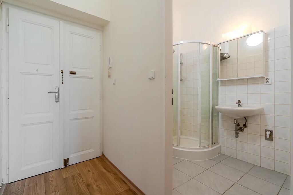 Dispozice bytu sestává ze samostatné kuchyně včetně všech spotřebičů a jedním pokojem, koupelna se sprchovým koutem a toaletou a předsíň.