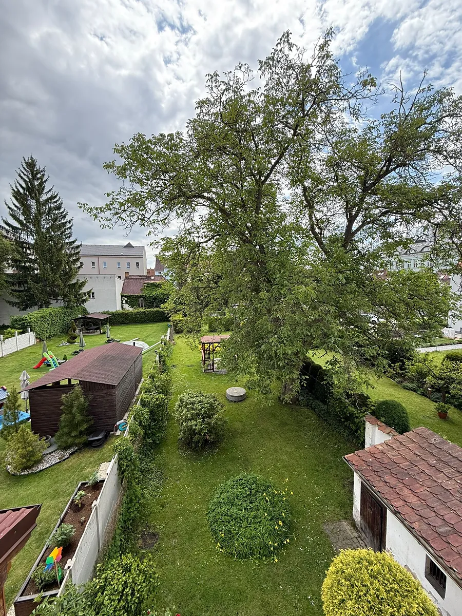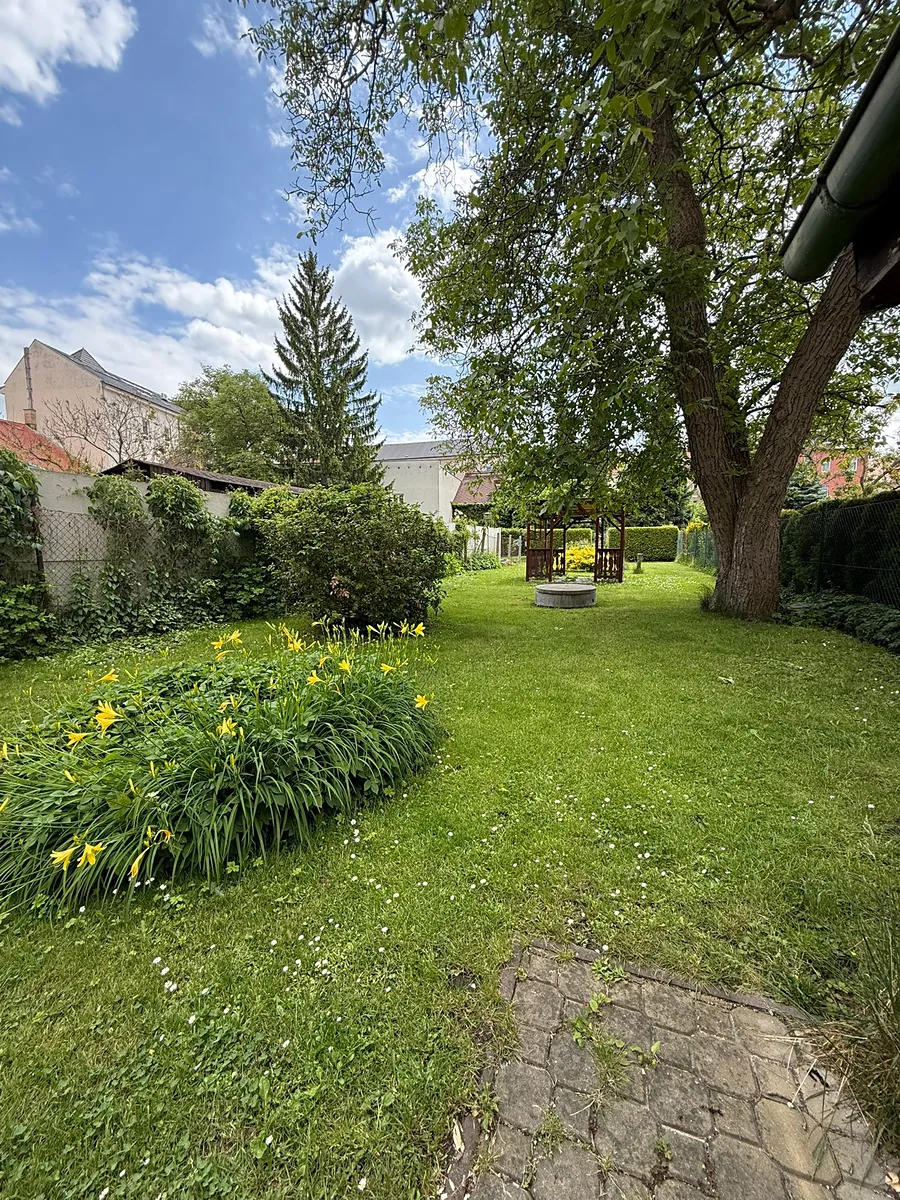 Zahrada o rozloze 366 m² je opravdovým klenotem této nemovitosti – vzrostlé stromy poskytují stín i soukromí, zatímco plocha zahrady nabízí dostatek místa pro zahradní posezení, dětské hry nebo i menší zahradničení.