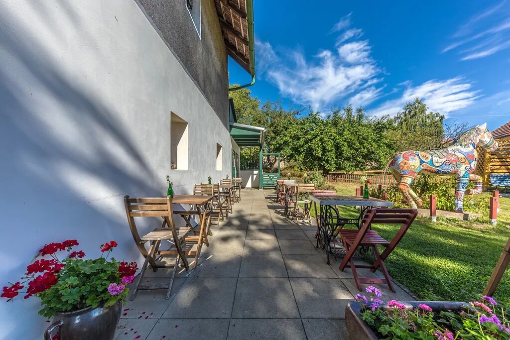 Objekt je celý uzavřený se vstupní bránou, pro účely restaurace je k dispozici venkovní posezení, pro vlastní potřeby je k dispozici zahrada.