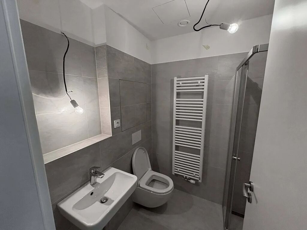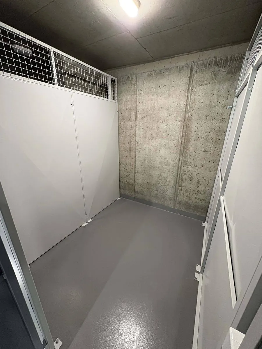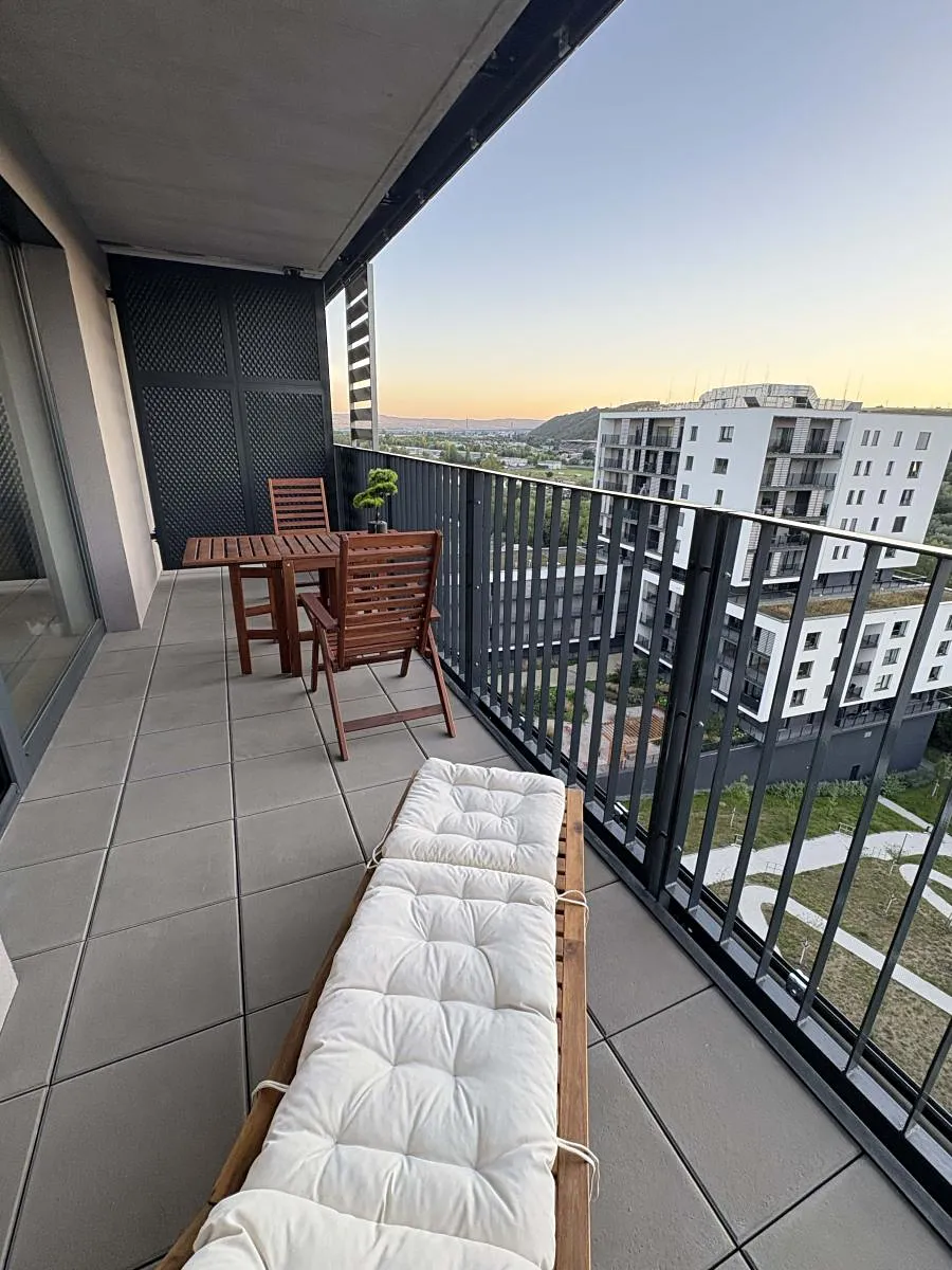 K bytu patří garážové stání a sklep. Standard zahrnuje rekuperaci, dřevěné podlahy, venkovní elektrické žaluzie na největším západním okně, bezpečnostní dveře a vybavený balkon (osvětlení, zásuvka).