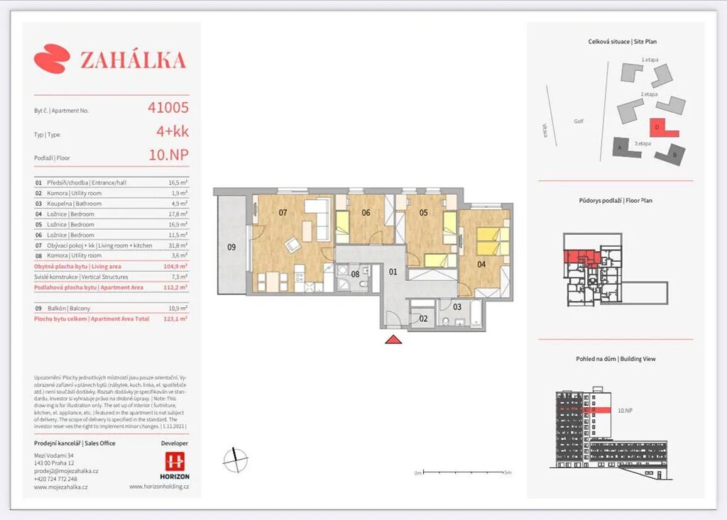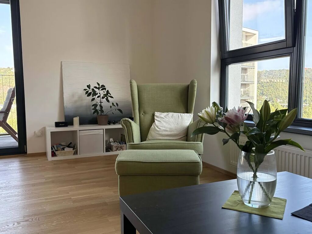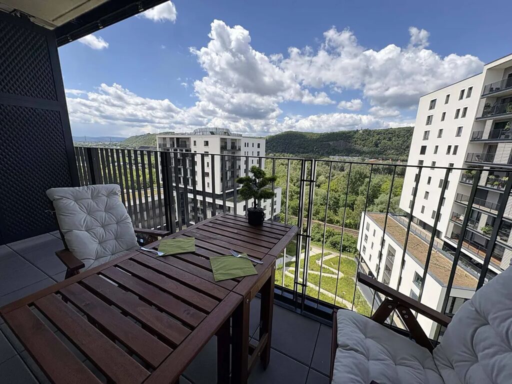 Světlý byt s nadstandardní plochou v 10. podlaží a výhledem na Vltavu a Barrandovské terasy je součástí nového rezidenčního projektu Zahálka. Nabízí obývací pokoj se vstupem na západně orientovaný balkon do zeleně, tři ložnice, dvě koupelny (vana i sprcha), komoru a vstupní halu. Tento moderní areál poskytuje energeticky úsporné komunitní bydlení, kvalitně upravená veřejná prostranství a bohaté možnosti sportu i relaxace v blízkém okolí.