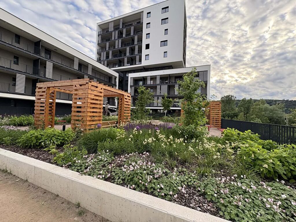 Novostavba se dvěma výtahy disponuje upraveným vnitroblokem s posezením a herními prvky. Byt je připraven k nastěhování, prodává se bez kuchyně a dalšího vybavení, což umožňuje novému majiteli zařídit si interiér dle vlastních představ. V domě je kolárna a kočárkárna.