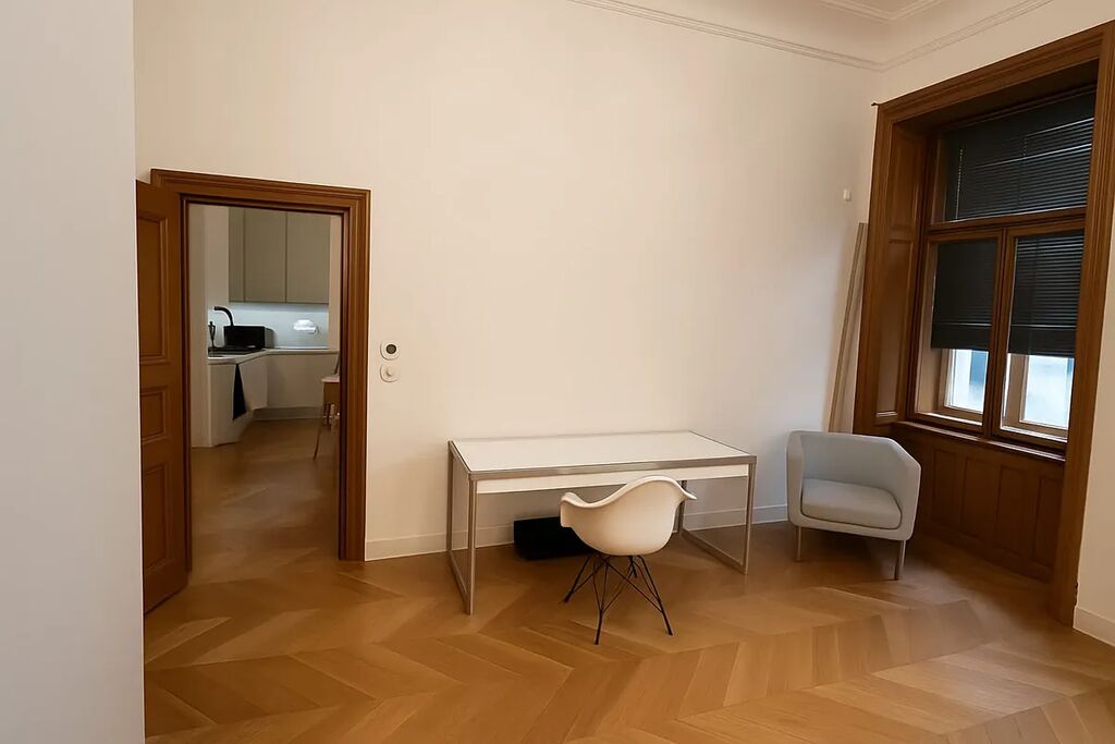 Byt se nachází v elegantní čtvrti Vinohrady, v těsné blízkosti kaváren, restaurací, butikových obchodů a kulturních podniků. Nedaleko se nachází oblíbené parky, jako například Riegrovy sady, a díky výborné dopravní dostupnosti se snadno a rychle dostanete do centra města i dalších částí Prahy.