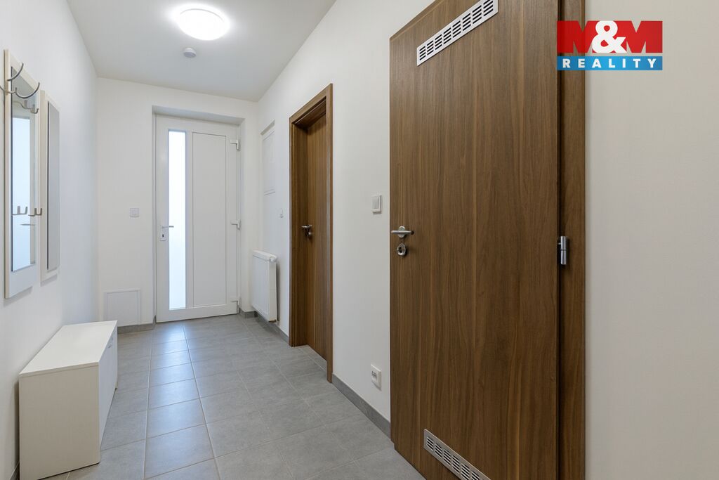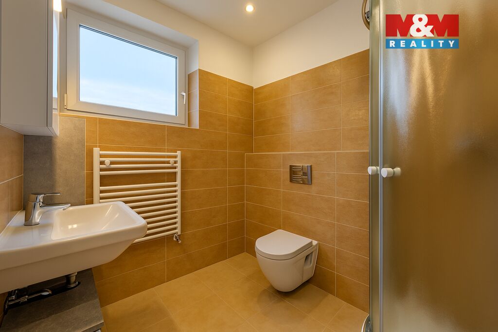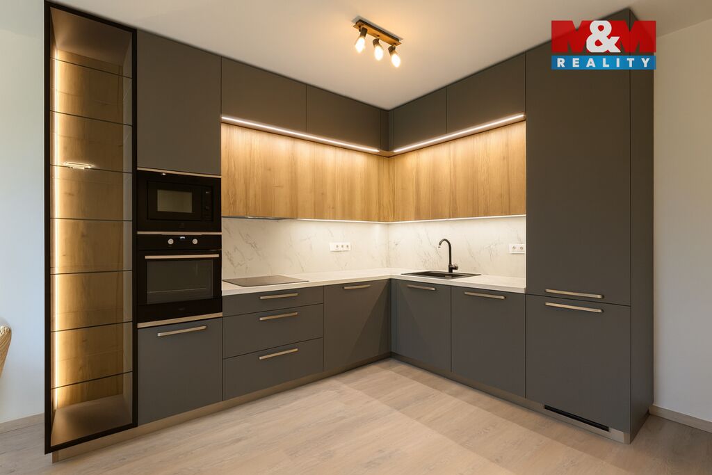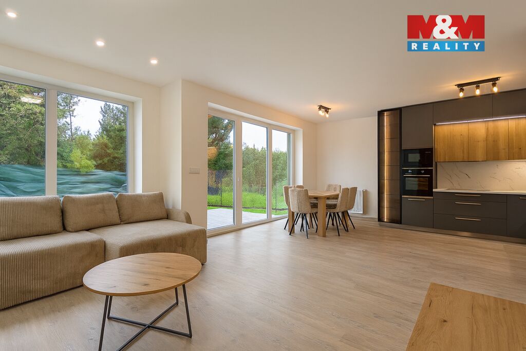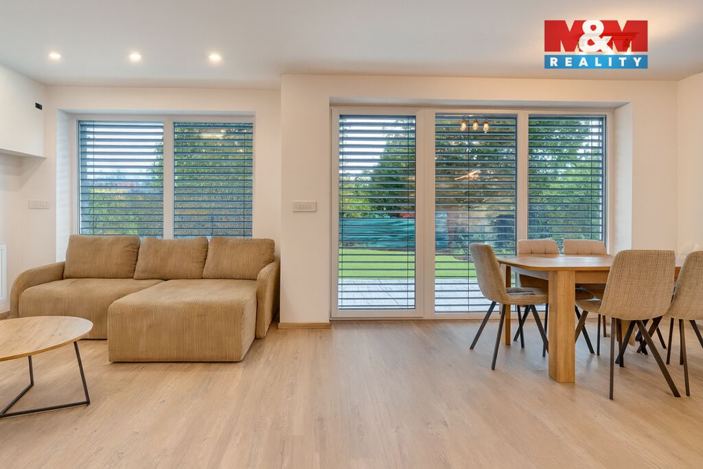 Nabízíme k pronájmu moderní novostavbu rodinného domu v klidné části obce Újezd Průhonic. Tento dvoupodlažní řadový dům nabízí komfortní bydlení na užitné ploše 146 m². Dispozice domu 4+kk zahrnuje prostorný obývací pokoj s krbovými kamny a přímým vstupem na terasu a do zahrady o velikosti 111 m², plně vybavenou moderní kuchyňskou linku, tři ložnice a úložné prostory, dvě koupelny a dvě toalety. K dispozici je v prvním patře také praktická skladová místnost, kterou lze využít jako šatnu. Dům je vybaven elektrickými venkovními žaluziemi na všech oknech a nabízí garáž pro jedno auto a další parkovací stání před garáží. Celková plocha pozemku činí 303 m². Ideální volba pro ty, kteří hledají klidné a moderní bydlení.