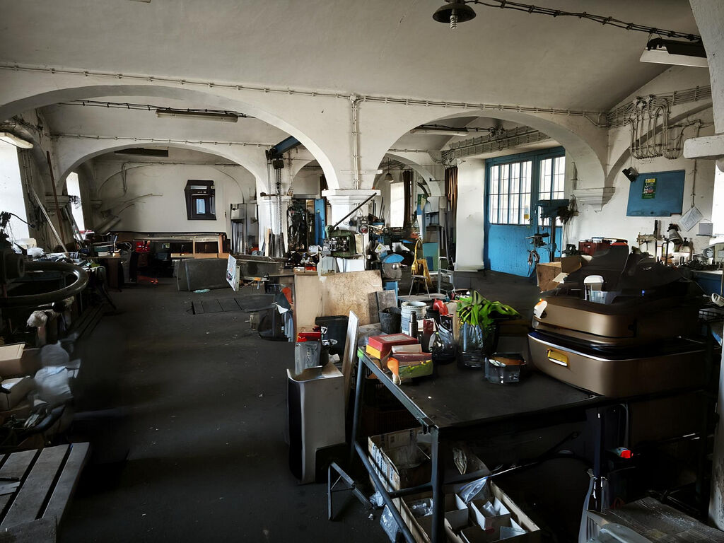 Jedinečný prostor včetně velké parkovací plochy před garážemi. Lze přidružit i místnosti k obývání či vytvořit několik kanceláří. Rozložení budovy: