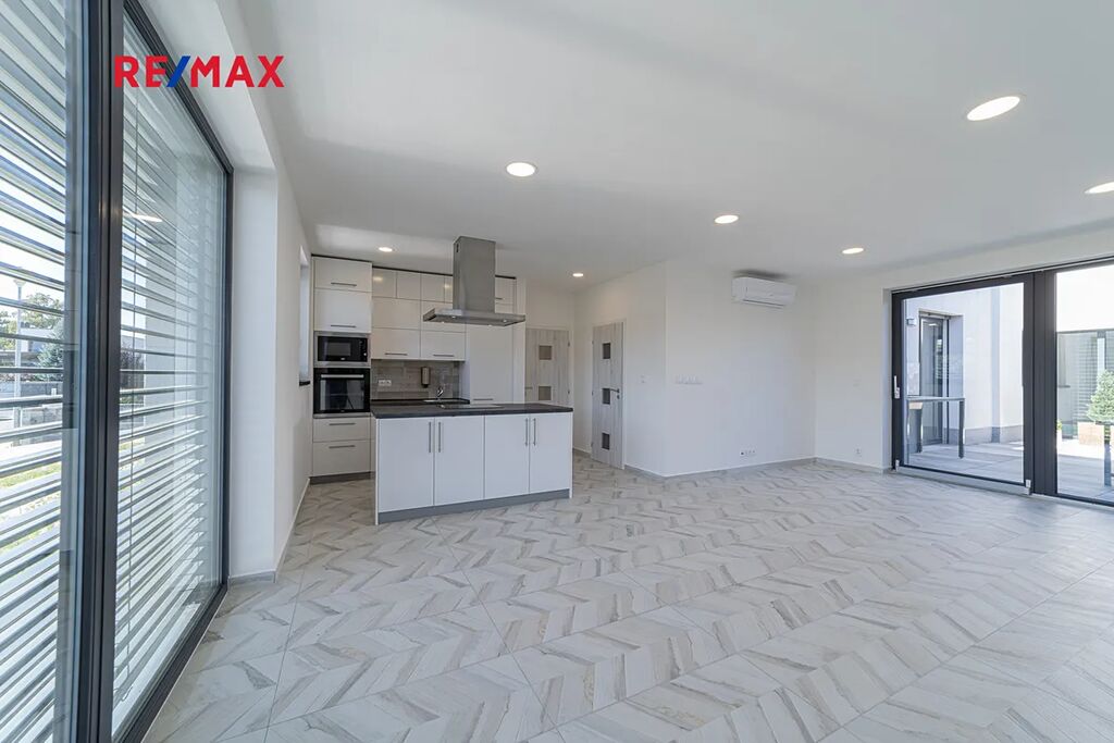 Dům ve tvaru písmene C je řešen celý jako bezbariérový s dispozičním řešením 5kk, dále disponuje atriovou terasou, vnitřním vyhřívaným bazénem, finskou saunou, parní místností, fit zónou, prostornou garáží a dvěma koupelnami. Jelikož má jeden z pokojů i vlastní sociální zázemí a přípravu pro kuchyňskou linku, může tato garsoniera sloužit nejen pro hosty, ale bude vhodná i pro starší děti a jejich partnery, nebo prarodiče, kteří ocení samostatný bezbariérový vstup do zahrady.