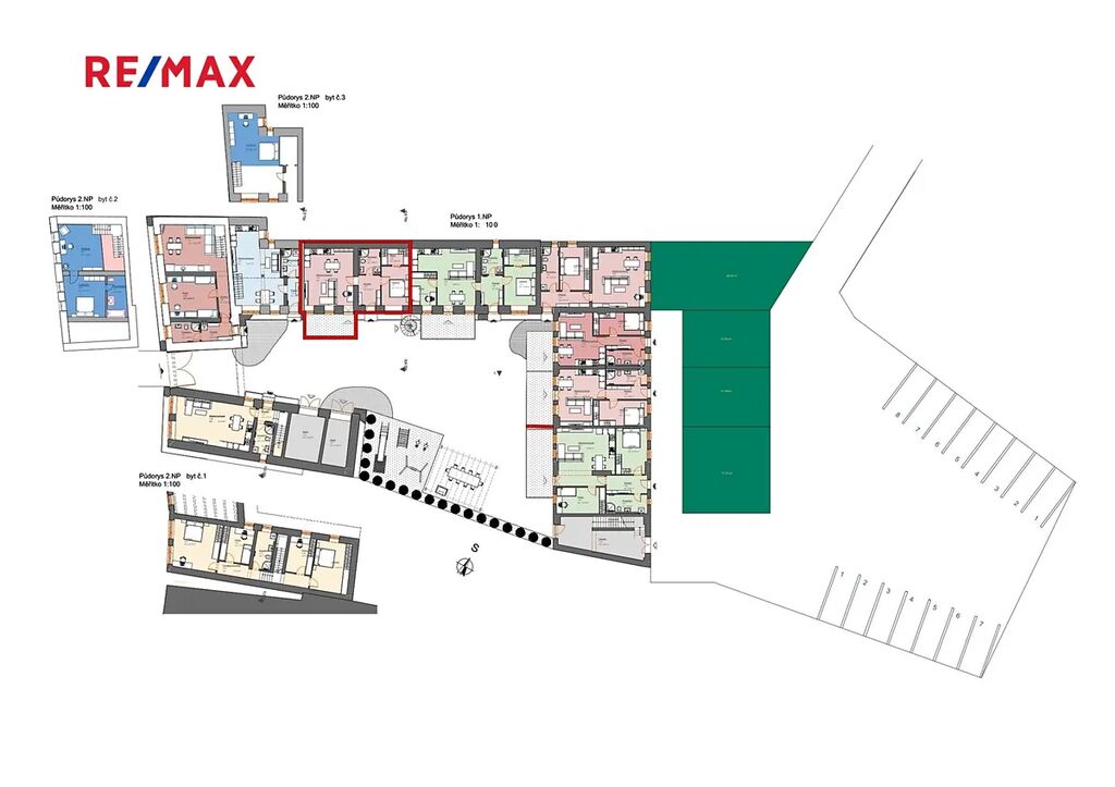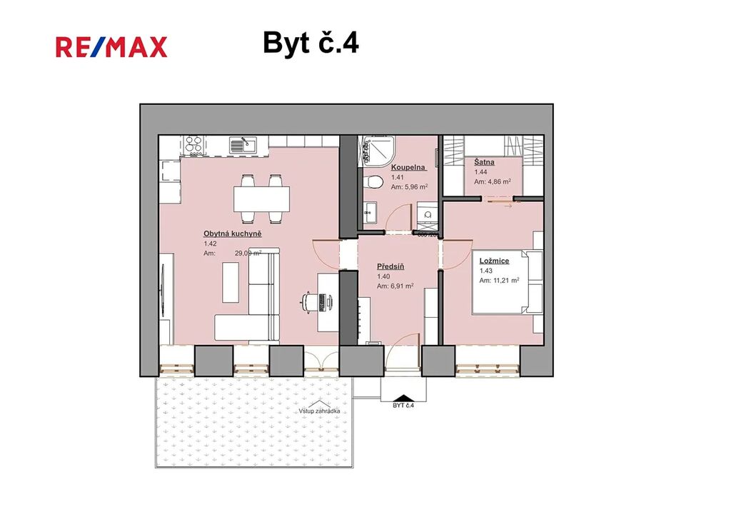 Nabízený byt disponuje vlastní terasou směrem do dvora objektu, parkovacím místem a společným odpočinkovým prostorem ve dvoře domu.