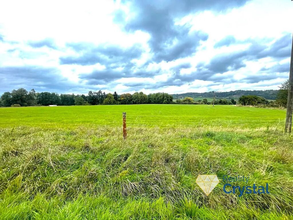 Pozemek je rovinatý skýtá neopakovatelné výhledy na okolní kopce a lesy.