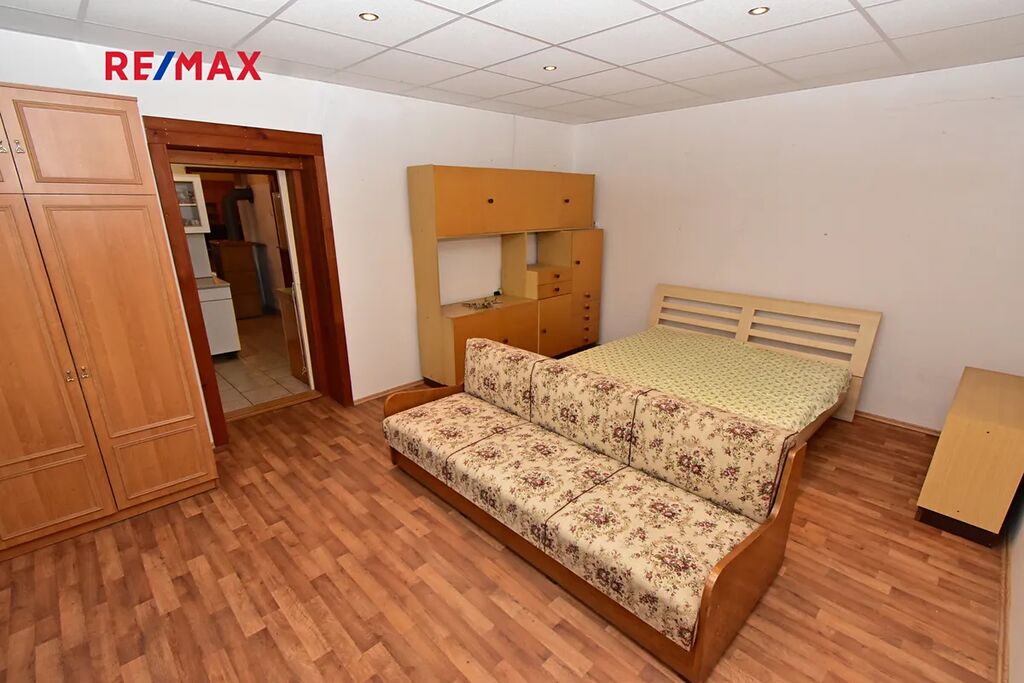 Rodinný dům Vám nabízí prostornou vstupní chodbu/zádveří, samostatnou toaletu, technickou místnost, dále chodbu se vstupem do obývací části (s jídelnou a krbem, 19 m2) a ložnici (19 m2) s oknem do dvora a ulice. Z chodby je vstup do koupelny (3,8 m2), dále do pravé části domu, kde se nachází kuchyně vč. špajzu, ložnice (18 m2), komora/sklad, větší spíž. V podkroví nalezneme ložnici (18,5 m2), dvě chodby, sklad (9 m2) a krásnou prostornou půdu (78 m2). Rodinný dům má dva vstupy, prostor pod schodištěm s čerpadlem pro studnu. U rodinného domu se dále nachází dva dřevníky.