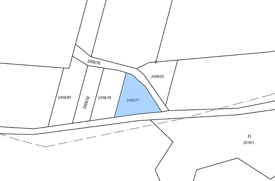 Pozemek je nepravidelného tvaru, nacházející se mimo zastavěné a