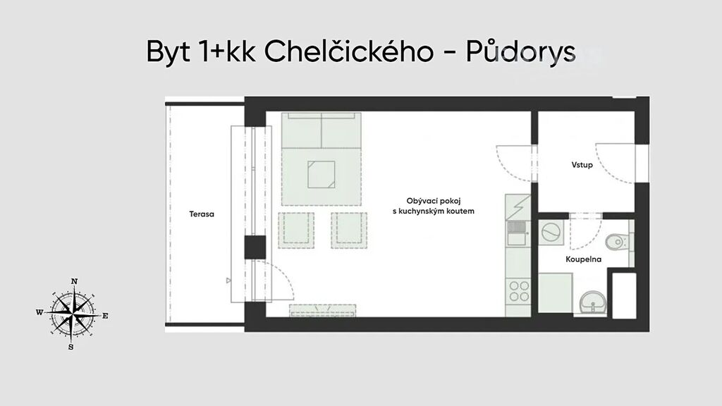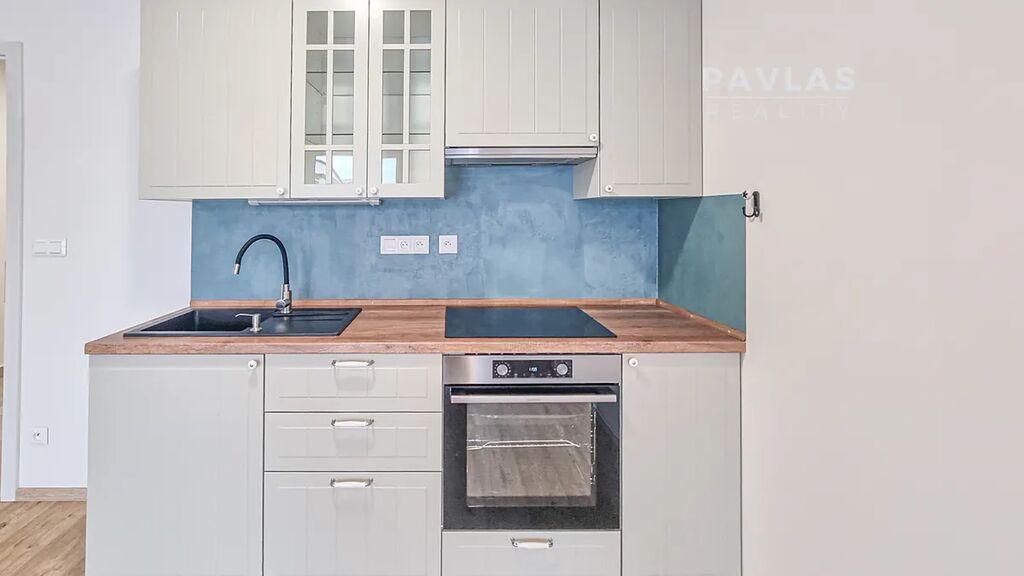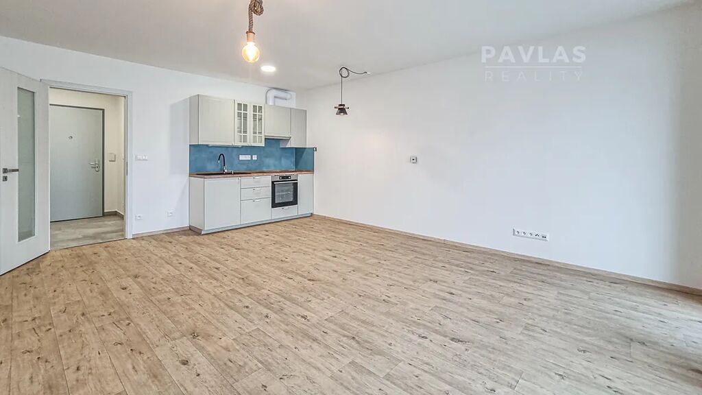 Byt je navržen tak, aby poskytoval maximální komfort. Dispozice zahrnuje vstupní chodbu s prostorem pro šatní skříň, světlý a prostorný obývací pokoj s moderním kuchyňským koutem vybaveným elektrospotřebiči a koupelnu se sprchovým koutem, umyvadlem a WC. Celý byt je vybaven podlahovým topením. Všechna okna jsou trojskla s přípravou na předokenní žaluzie. Z obývacího pokoje je vstup na terasu. Součástí pronájmu je také skladovací kóje na patře vedle bytu.