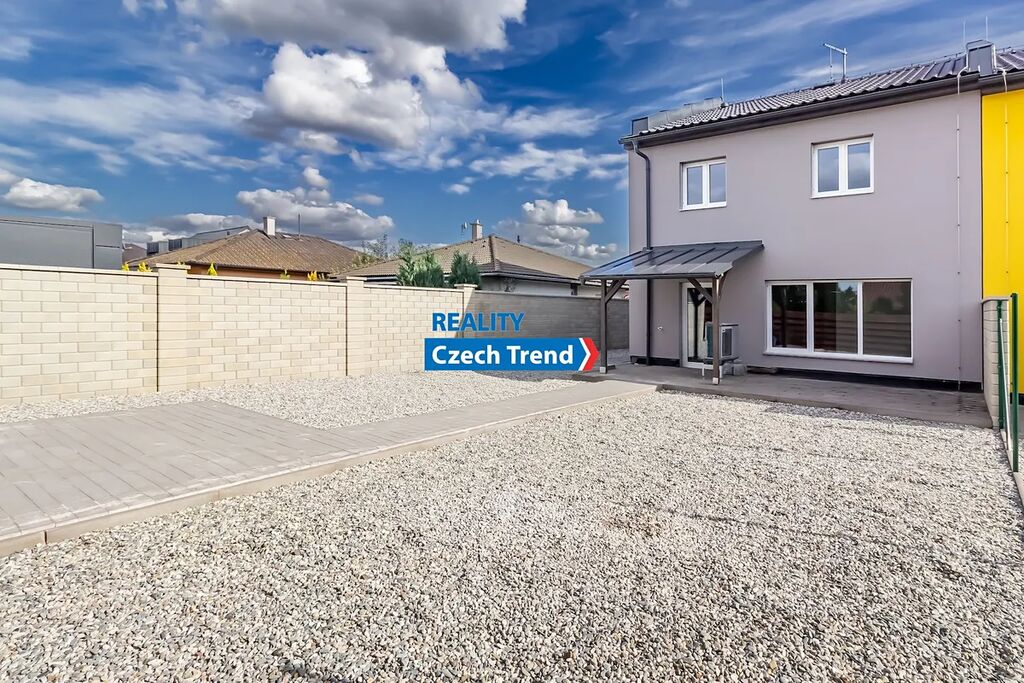 Hledáte klid a komfort? Nabízíme Vám k pronájmu zcela nový moderní řadový rodinný dům 4+kk s garáží a venkovním parkovacím stáním pro dvě auta v rámci developerského projektu v obci Bystročice nedaleko Olomouce. Velmi nízké nájemné je nižší, než nájemné srovnatelně velkého bytu s garáží v Olomouci. Měsíční zálohy na elektřinu vč. topení jsou cca 4.000,- Kč, na vodu cca 1.000,- Kč. Celková velikost pozemku k domu je včetně zastavěné plochy 235 m². Dům je postaven z cihel Porotherm, okna trojskla, značkové armatury Hansgrohe. V přízemí domu je vstupní chodba, koupelna se sprchovým koutem, umyvadlem, toaletou a přípojkou na pračku, technická místnost s tepelným čerpadlem o výkonu 8 kW, značky Nibe F 2040-8 + VVM 225 s bojlerem o obsahu 180 l, kuchyňský kout s kuchyňskou linkou s vestavnými nerezovými spotřebiči a přípravou na myčku, obývací pokoj s francouzským oknem a vstupem na částečně zastřešenou terasu a schodiště do patra. V patře domu jsou tři ložnice, šatna a koupelna s vanou, umyvadlem, toaletou, bidetem a přípojkou na pračku. V celém domě včetně garáže je na podlaze dlažba s teplovodním podlahovým vytápěním. Dům je připojen na optický kabel, rozvody internetu a TV signálu jsou v každém pokoji.