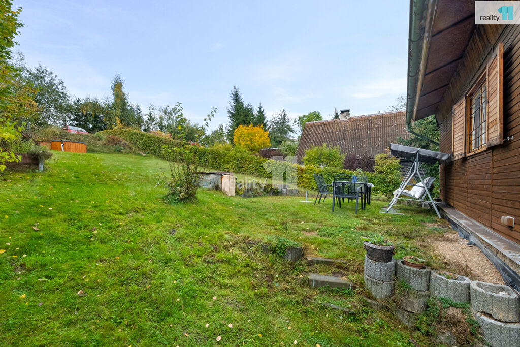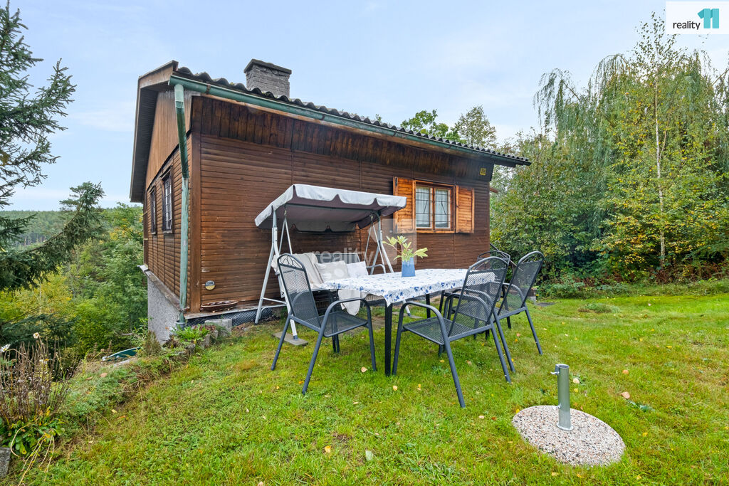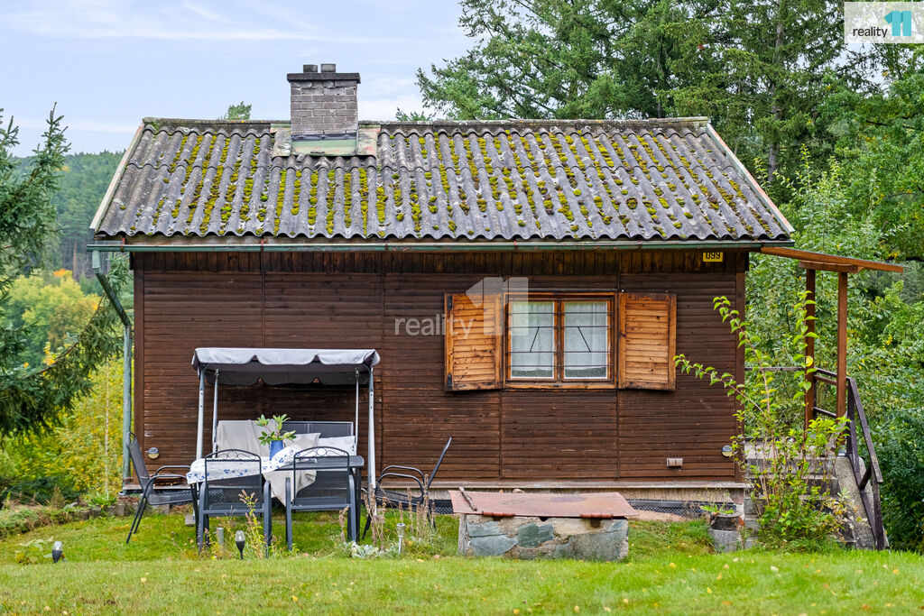 Okolí tvoří lesy, příroda a soukromí, přesto je dobře dostupné autem. Nemovitost je ideální pro víkendový odpočinek, letní dovolenou nebo celoroční relax v přírodě. Ev. číslo: 27835.