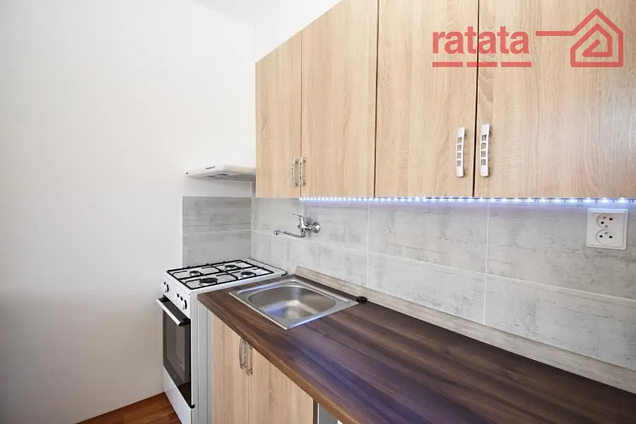 Byt je čistý a slunný. Je zde nová kuchyňská linka, plynový sporák, pračka, úložný prostor, vyklápěcí postel.
