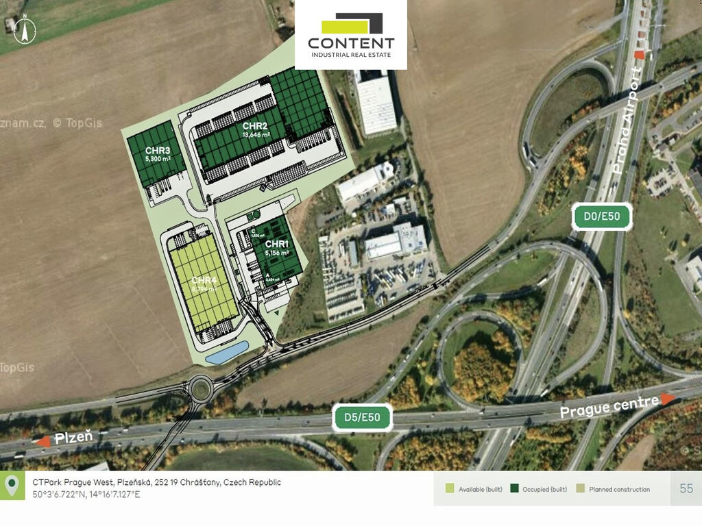 V zastoupení majitele a bez provize nabízíme novostavbu skladových nebo výrobních prostor 8794 m², umístěných v komerčním parku v těsné blízkosti dálnice D5 a pražského okruhu D0.