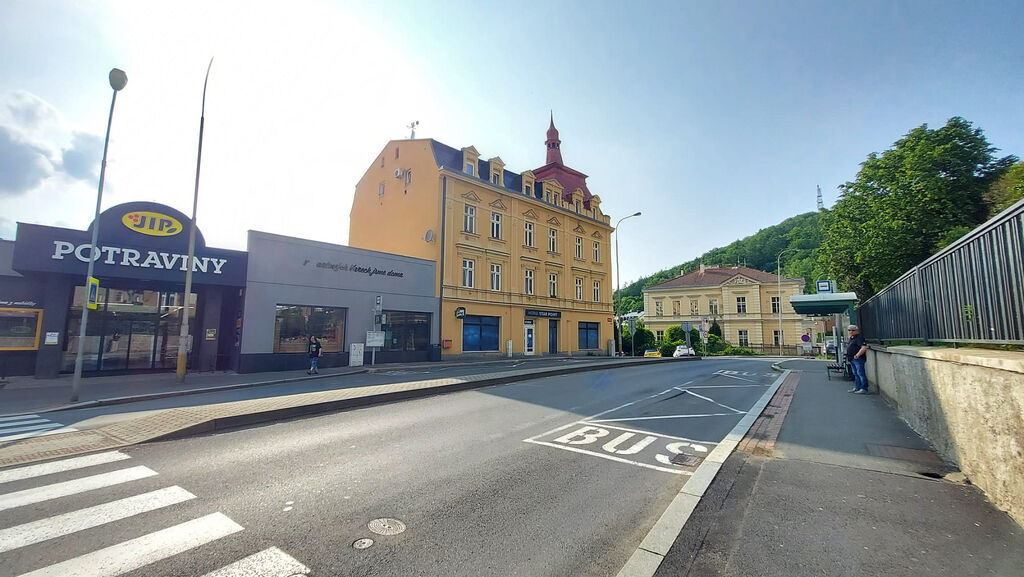 U domu je potravinový obchod, restaurace, zastávka MHD.