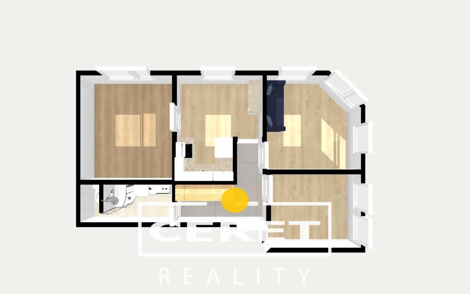 Nabízíme k prodeji slunný byt 3+1 o velikosti 93 m2, v klidné lokalitě ulice A. Heyduka v Žatci. Jedná se o osobní vlastnictví ve zděném domě s plastovými okny. Byt se nachází ve 2. patře a je po rekonstrukci koupelny a kuchyně, vč. elektřiny, rozvodů vody a odpadů v roce 2011. Všechny 3 pokoje jsou v dobrém stavu. Obývací pokoj má and #34;seřízlý roh and #34; s oknem, což bytu dává zajímavý atypický vzhled. Topení je plynovým kotlem s rozvodem do radiátorů. Za domem se nachází dvorek s příjemnou zahrádkou a posezením pod menší pergolou.