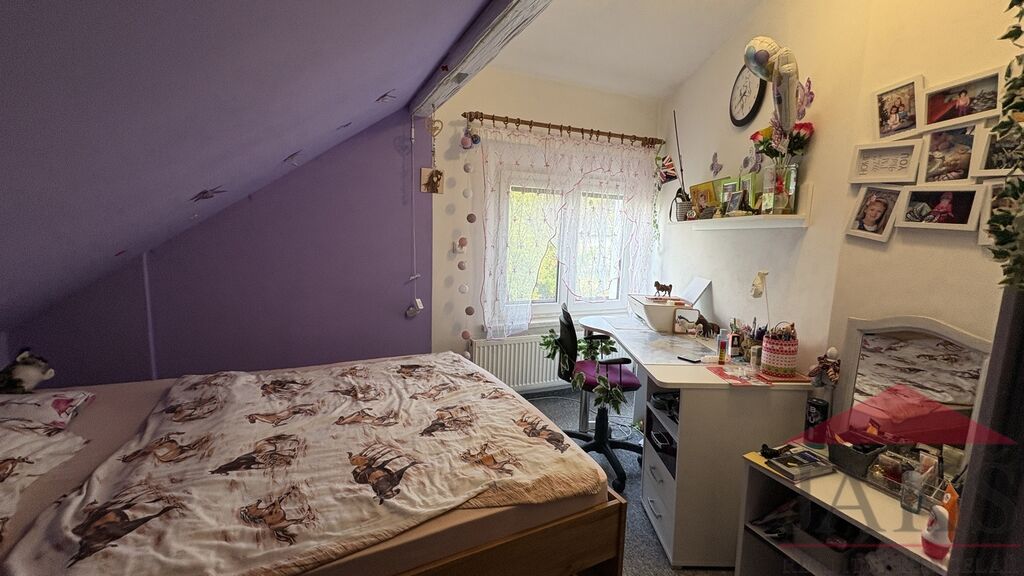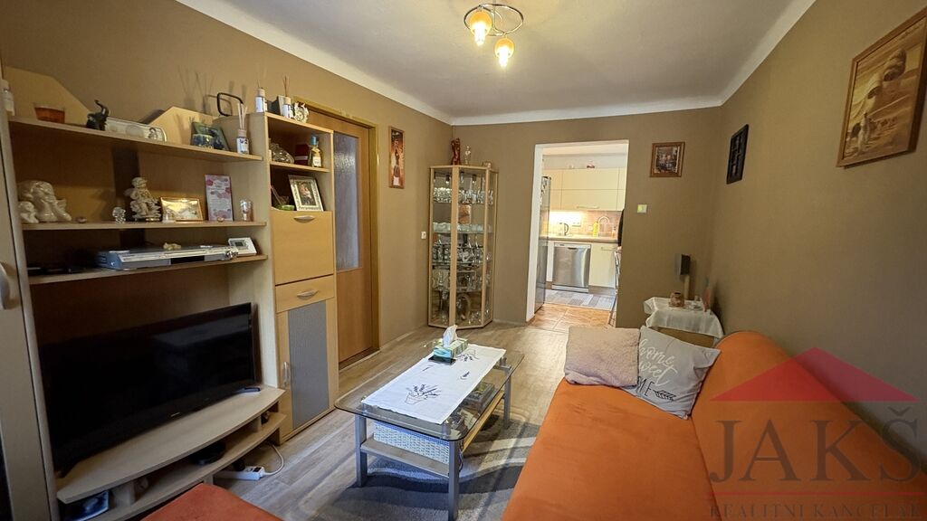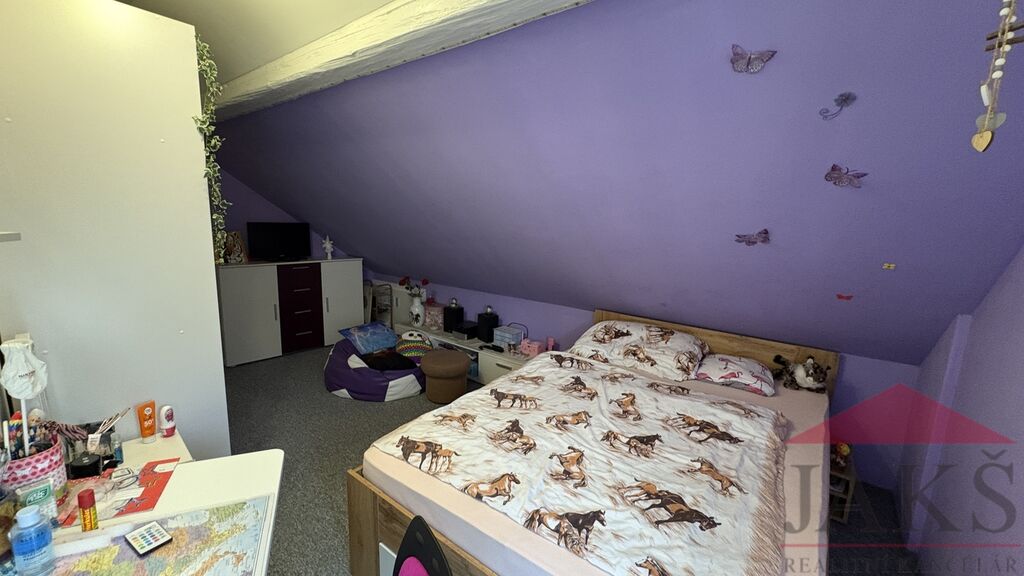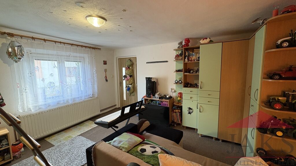 Popis: část. podsklep.: sklep s klenbou (sklad potravin); přízemí: vstupní chodba se schodištěm, kuchyň (kuch. linka na míru s vest. spotřebiči: HV trouba, MV trouba, sklo-ker. deska, digestoř a myčka) s jídelnou a franc. oknem na okrasnou zahradu, průchozí koupelna (rohová vana, umyv. se skříňkou a zrcadlem, oddělené WC) do prádelny (vývody na pračku) a kotelny, obývací pokoj a ložnice; podkroví: podesta, koupelna (nedokončená; chybí osadit sanita, dlažba a obklad), 2x ložnice a půdička.