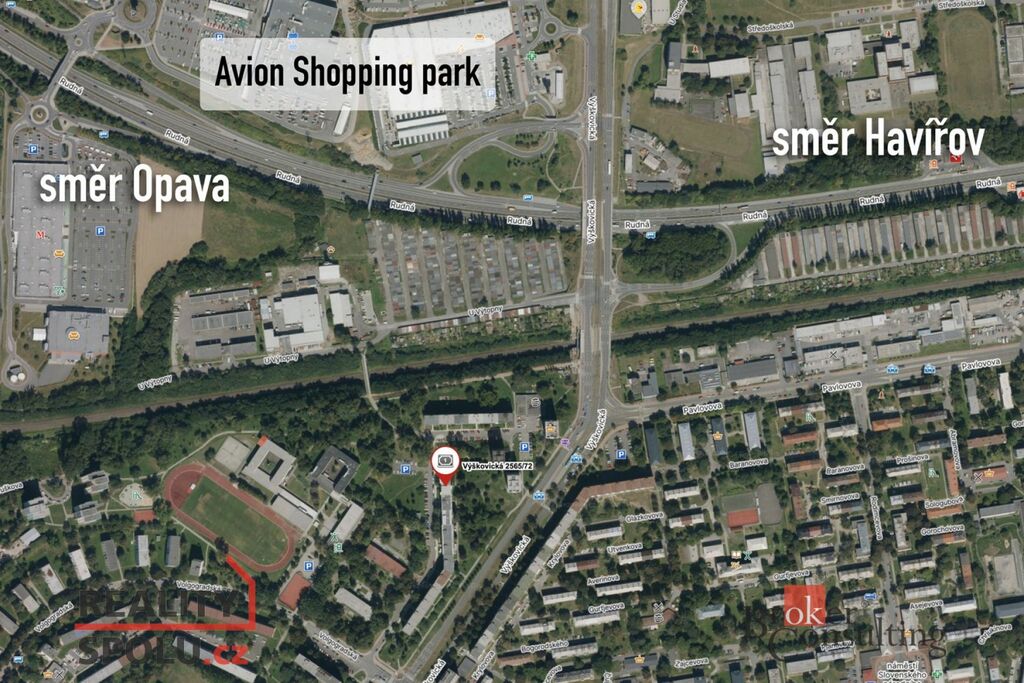 Byt se nachází v žádané lokalitě Ostrava - Zábřeh, s výbornou občanskou vybaveností: školka a školy včetně gymnázia jsou vzdáleny do deseti minut chůze, v okolí najdete obchody pro každodenní potřeby i větší nákupní centrum Avion Shopping park Ostrava (20 min pěšky). Přímé spojení MHD je zajištěno tramvají a autobusy. V blízkosti naleznete i dostatek zeleně.