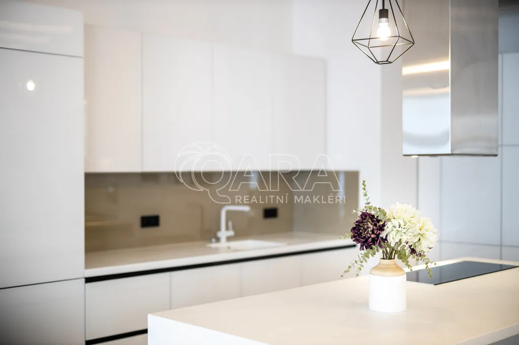 Byt je pronajímán s nadstandardním vybavením. Plně vybavená kuchyňská linka (indukční varná deska, el. trouba, lednice, mrazák, myčka, mikrovlnná trouba), jídelní stůl s židlemi, stylová sedací souprava, TV, pohodlný sedací nábytek, v ložnici luxusní manželská postel, druhá ložnice bez nábytku. Koupelna je vybavena produkty značky Preciosa, vyhřívanou podlahou. V bytě jsou dřevěné podlahy, velké množství úložného prostoru, vysoké stropy zajišťující dostatek světla. Sálavá vytápění a chlazení je umístěné ve stropech. Inteligentní systém ovládání domácnosti, systém nucené výměny vzduchu. K dispozici wifi. O vzhled interiéru se s důrazem na funkčnost a design postaralo vyhlášené architektonické studio de.fakto. Parkování je možné zajistit v OC Palladium.