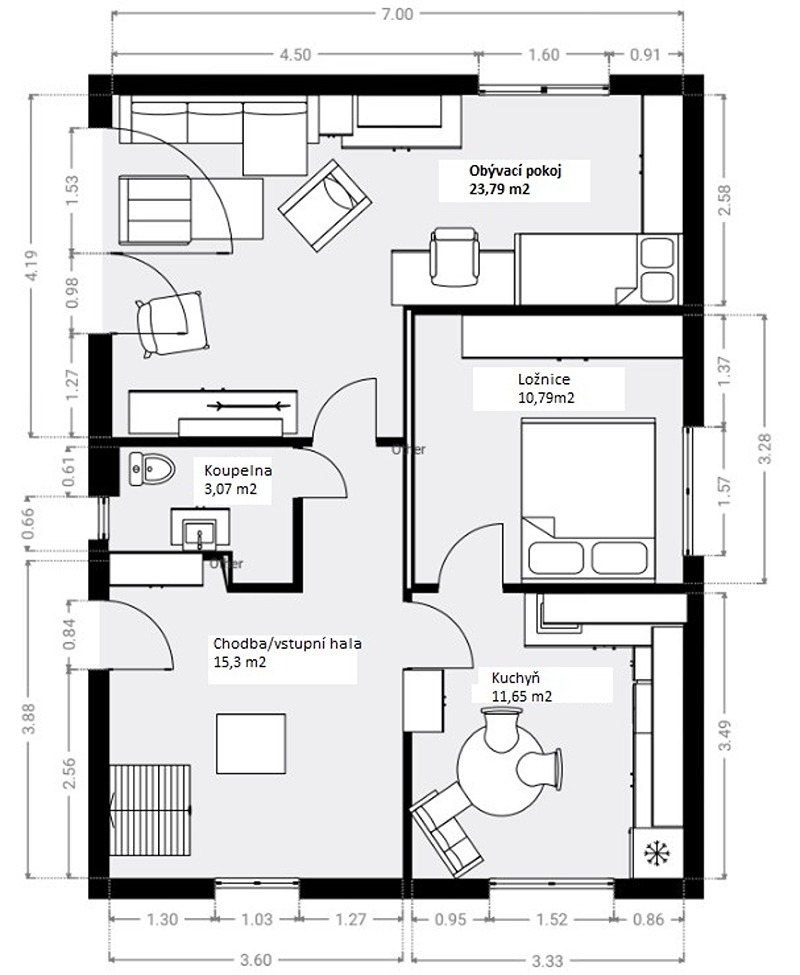 Měsíční náklady na provoz domu činí přibližně 6.500 Kč. Některé vybavení domu je možné po dohodě ponechat.
