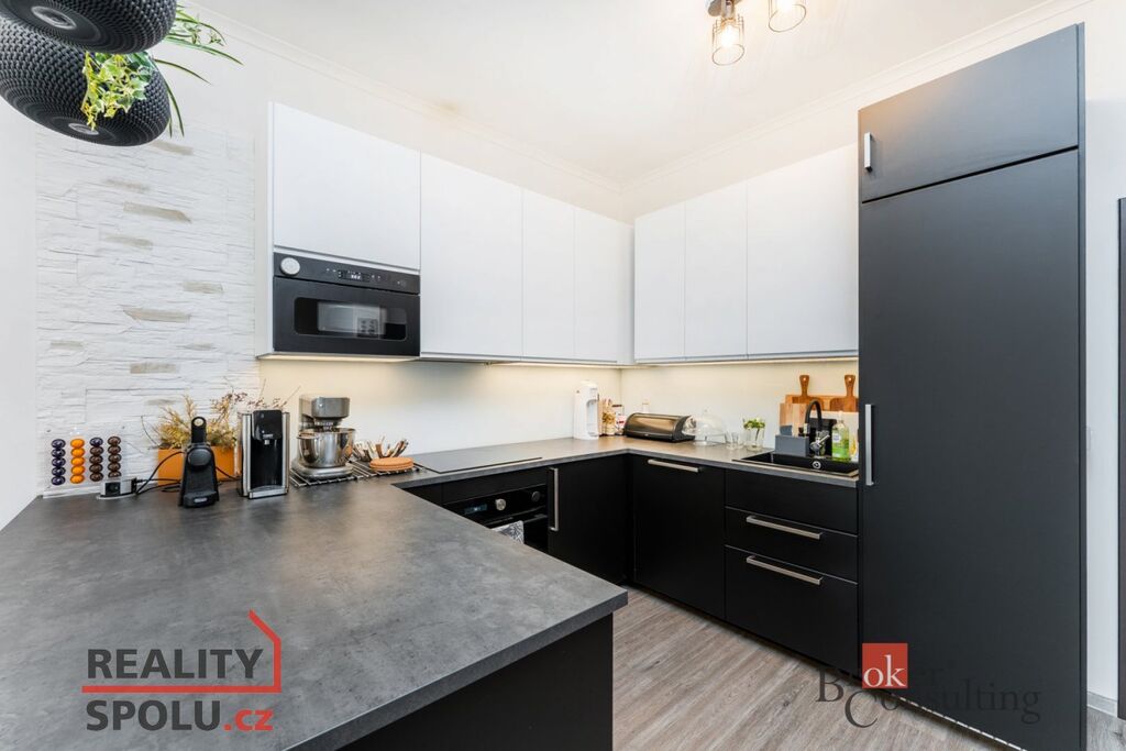 - Kuchyň značky IKEA s vestavěnými spotřebiči Siemens a Electrolux s jídelním koutem