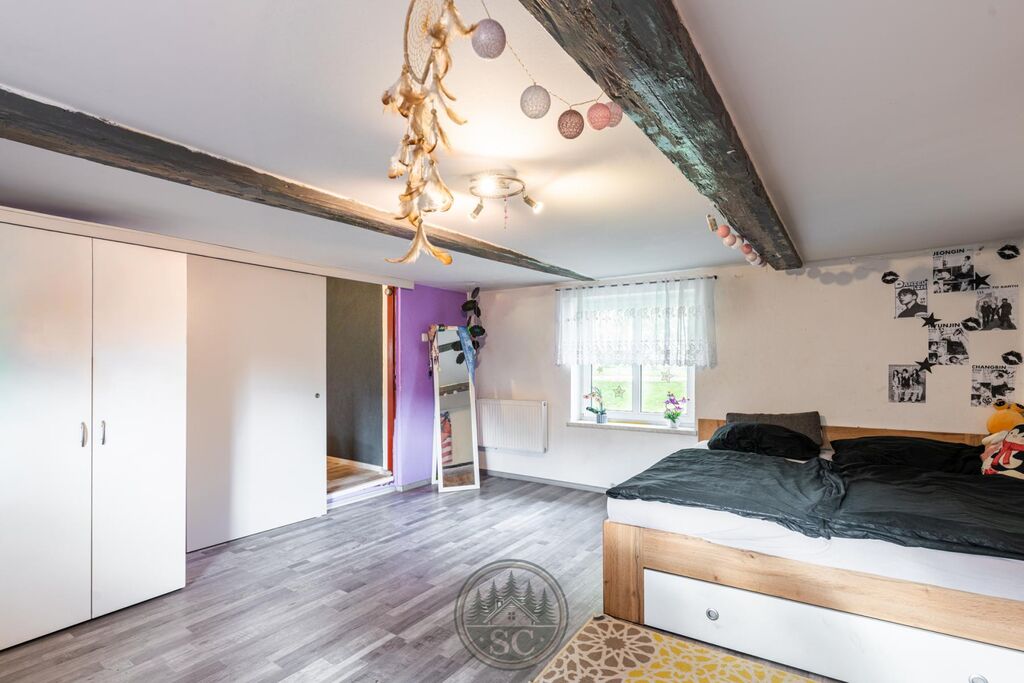 Dispozice domu je promyšlená a útulná. Vstupem se dostanete do předsíně, dále se zde nachází kuchyň s linkou a sporákem, obývací pokoj, ložnice, dvě menší místnosti (jedna slouží jako spíž), zrekonstruovaná koupelna se sprchovým koutem a WC. V kuchyni vynikají krásné stropní trámy, které prostoru dodávají příjemnou venkovskou atmosféru. V podkroví je ložnicová část rozdělená na dva dětské pokoje - i zde jsou dřevěné trámy, které interiéru dodávají osobitý charakter - a další samostatné WC. Ze schodišťové chodby je umožněn přístup na střechu i do půdních prostor.
