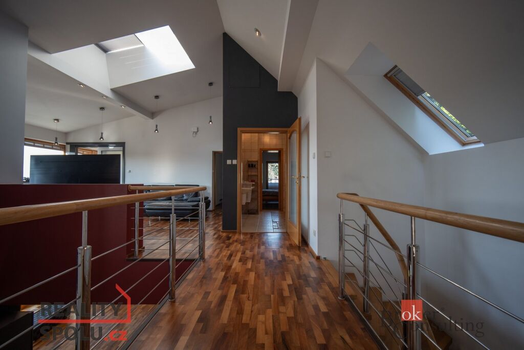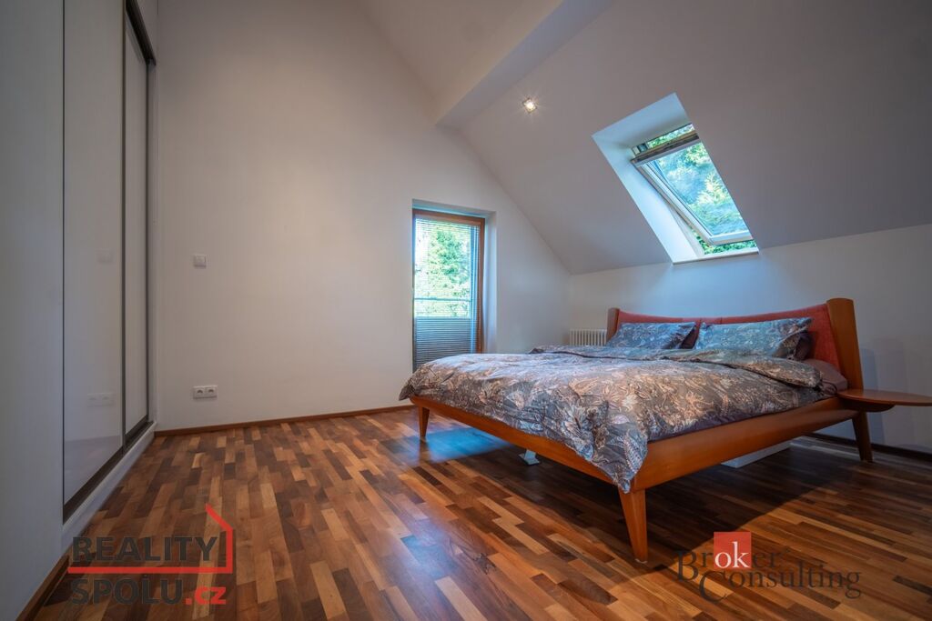 Nachází se na Praze 5 ve vilové čtvrti, která je mnohým utajena. Máte tu tak klid a soukromí, které si zasloužíte. Další výhodou domu jsou velkorysé prostory a třeba vnitřní bazén.