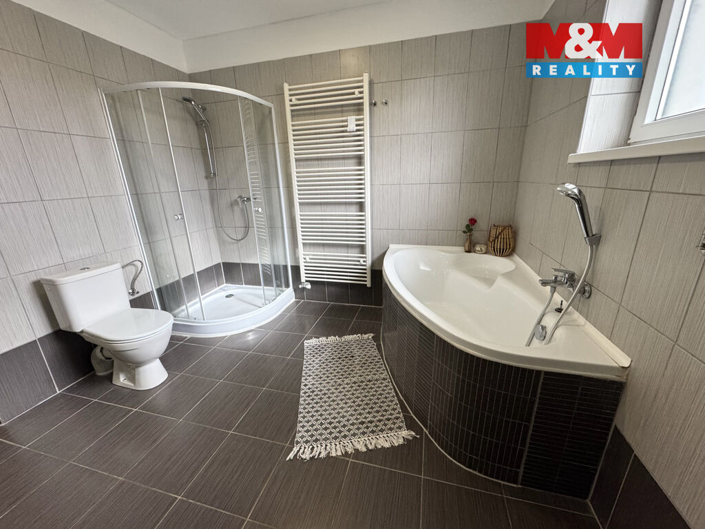 V kuchyňském koutu najdeme moderní linku, která je vybavena vestavěnými spotřebiči. O teplo a nízké provozní náklady se stará plynový kotel, který v kombinaci s krbem a klimatizací zaručuje ideální komfort v každém ročním období.