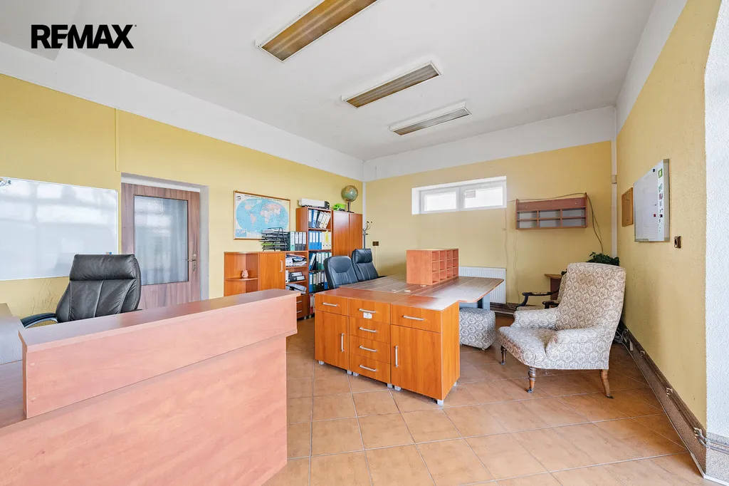 Dvoupodlažní budova s celkovou užitnou plochou 1 220 m², je aktuálně v 1. nadzemním podlaží dispozičně rozdělena na prostory výrobní, skladové a administrativní s odpovídajícím sociálním zázemím. Dominantním prostorem je 148 m² veliká dílna s výsuvnými vraty, která byla využívána pro servisování nákladních automobilů. K dispozici jsou rovněž 2 dvojgaráže.