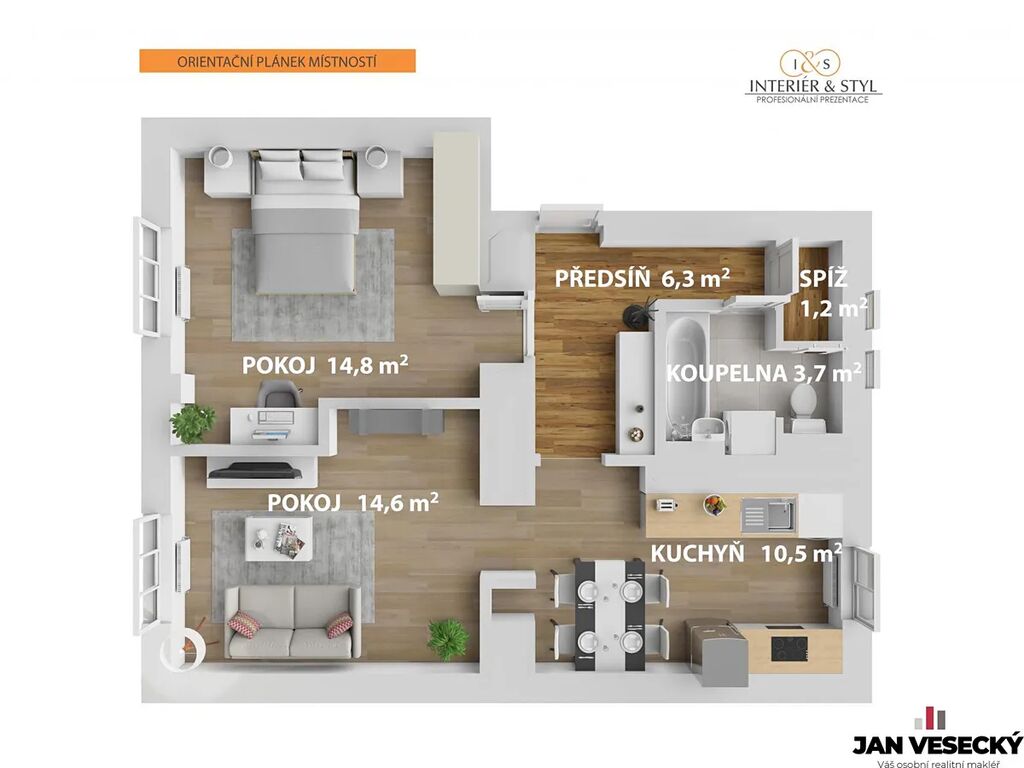 Ve výhradním zastoupení městské části Praha - Čakovice, bych vám rád nabídnul pronájem obecního bytu dispozičně řešeného jako 2+1 o celkové užitné ploše 58,22 m2. Čistá podlahová plocha bytu je 51,10 m2 a náleží k němu ještě zděný sklep o velikosti 7,12 m2. Byt je umístěn ve 2.NP (1.patře) cihlového domu bez výtahu na adrese Niská 630/2. Konkrétní dispozici a výměry jednotlivých místností naleznete v přiloženém 3D půdorysu.