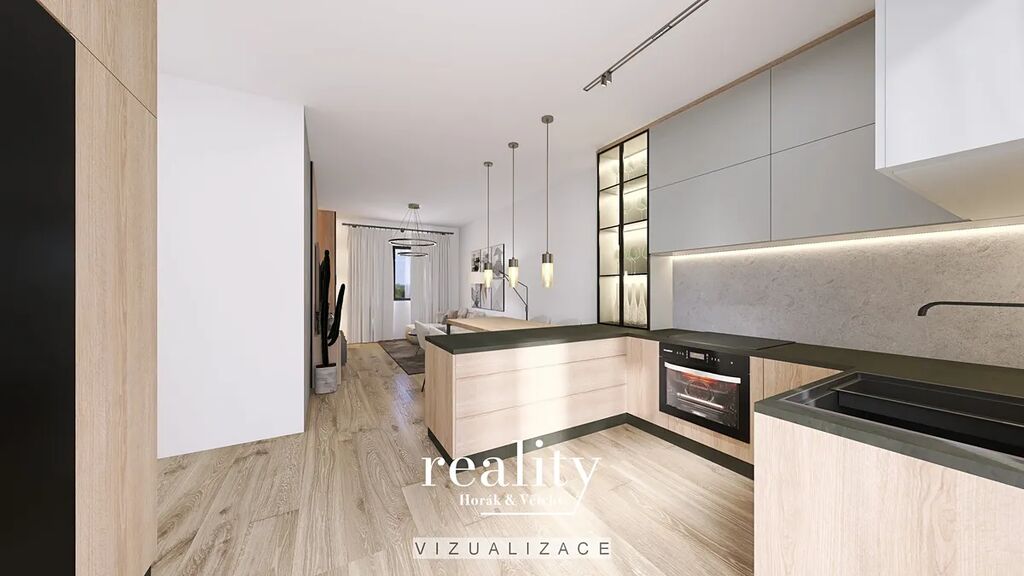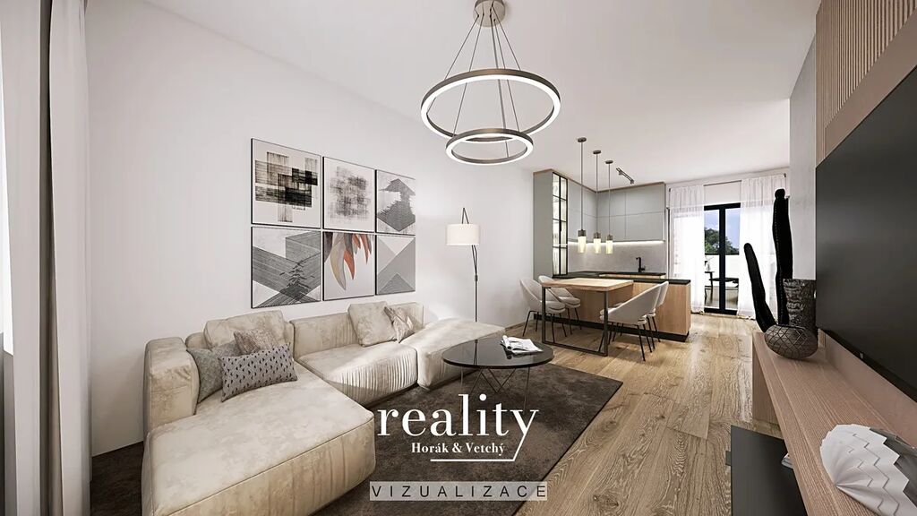 Ateliér v 1NP v Rezidenci Kroužek nabízí moderní a komfortní bydlení o dispozici 2+kk s podlahovou plochou 40 m².