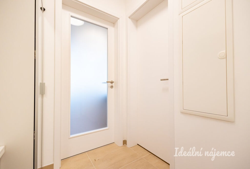 Byt se nabízí nevybavený nábytkem, takže si ho můžete zařídit dle svých preferencí. Kuchyně disponuje lednicí s mrazákem, myčkou, elektrickou troubou, varnou deskou, digestoří a barovým stolem s 2 židlemi. V koupelně je vana, umyvadlo, zrcadlo, koupelnová skříňka, pračka a závěsné WC. V předsíni najdeme vestavěnou skříň a police.